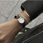 Funciones especiales Esfera blanca con números romanos, caja metálica dorada, correa de cuero café genuino, cristal mineral resistente a rayones, diseño elegante y clásico