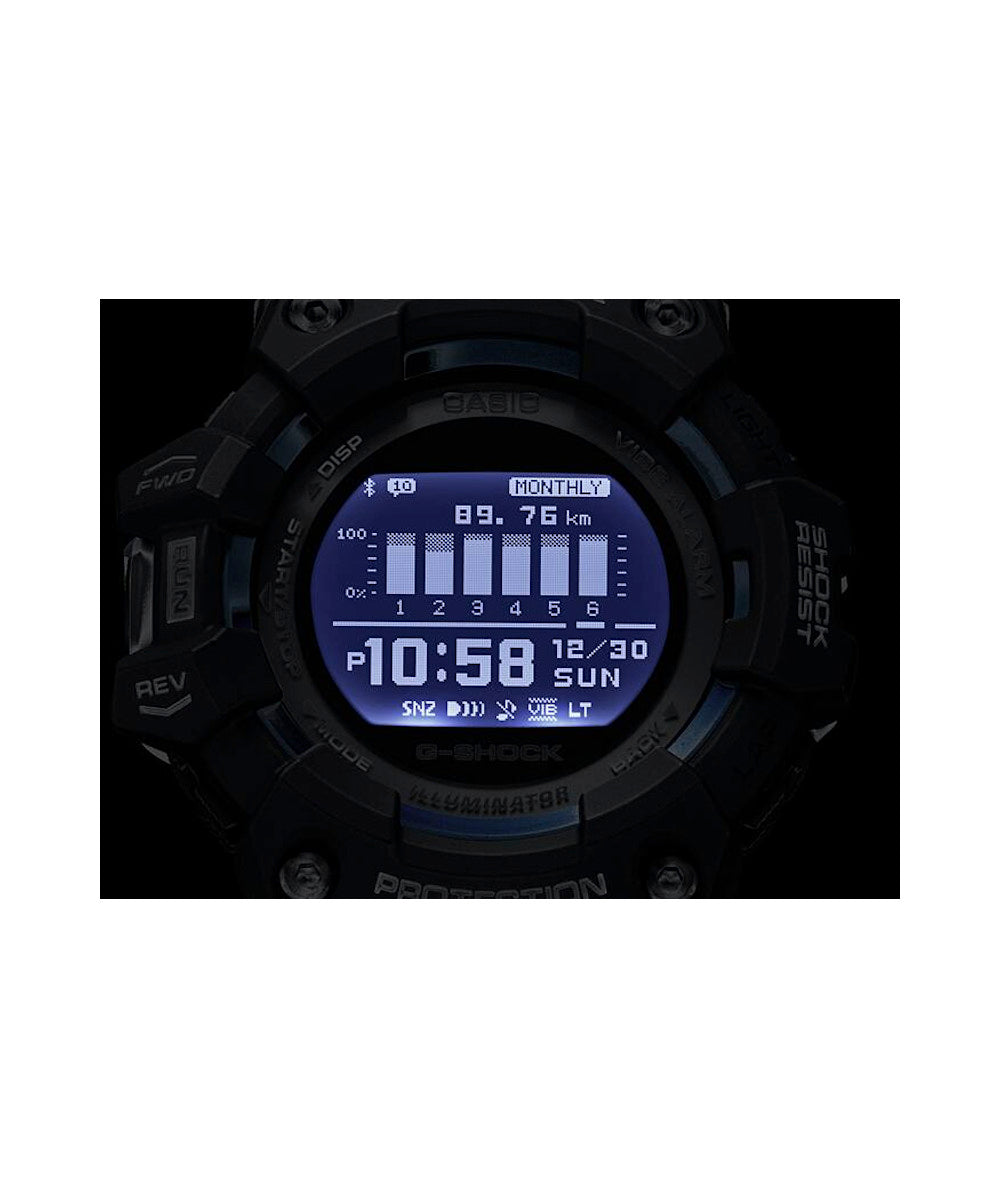 La línea deportiva “G-SQUAD” de G-SHOCK. Las mediciones de distancia del acelerómetro se corrigen mediante la vinculación con las funciones GPS del smartphone a través de la conexión Bluetooth®. Además de hacer un seguimiento del ritmo de la carrera comparando la distancia medida con el tiempo de carrera, también está equipada con una función de vuelta automática. Es compatible con el entrenamiento diario mediante la combinación de un contador de pasos convencional, un temporizador de intervalos, un temporizador de vueltas y una calculadora del consumo de calorías. También cuenta con las aplicaciones exclusivas Life Log y Activity History, y permite la creación automática de planes de entrenamiento. Utiliza un LED de MIP de alta definición para la pantalla y también está equipado con Super Illuminator. Se utiliza un material de uretano suave en la correa para lograr un ajuste más cómodo, y se proporciona una gran cantidad de orificios para un ajuste fino. También tiene una duración de la batería de aproximadamente dos años, incluso cuando se utilizan varias funciones cada día. Útil para una gran cantidad de propósitos, desde el control diario de la salud hasta la mejora de la resistencia en las carreras.