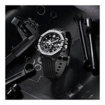 Vinculación con smartphone | Un modelo de vinculación con smartphone que presenta un marco octogonal de EDIFICE, que sigue evolucionando como cronógrafo metálico avanzado de alto rendimiento. Siempre que el reloj esté cerca de un smartphone, puede vincularse a la aplicación exclusiva “EDIFICE Connected” a través de la vinculación con smartphone por Bluetooth® y conectarse sin utilizar botones para corregir la hora. El temporizador de agenda, que se desarrolló en función de los comentarios del equipo de F1, utiliza el reloj para notificar a los usuarios cuando comienzan y terminan los eventos programados en el smartphone. El reloj está equipado con una luz LED que se enciende con una simple inclinación de la muñeca. El marco tiene un acabado con baño de iones de color negro que resiste los rayones.