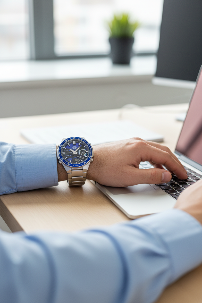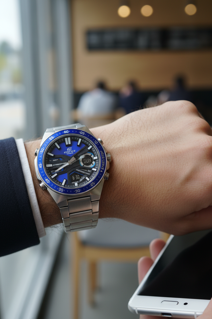 El Casio Edifice EFV-C110D-2AVDF combina elegancia y tecnología moderna en un diseño deportivo. Con su llamativa esfera azul y su estructura robusta en acero inoxidable, este modelo ofrece una excelente funcionalidad para quienes buscan precisión y estilo.