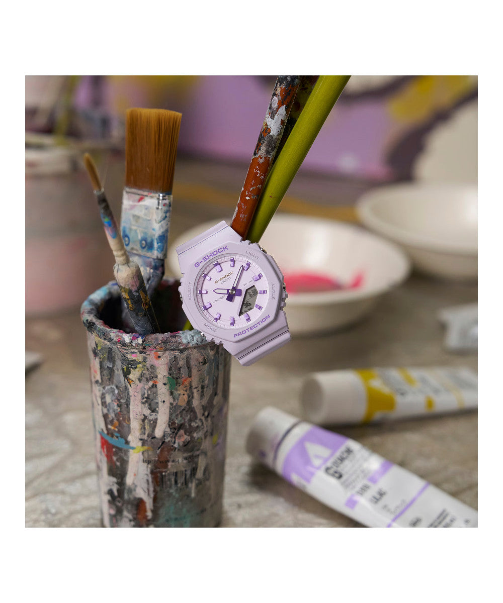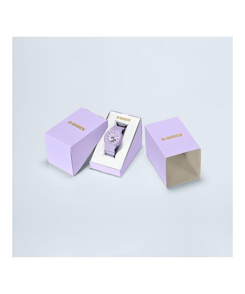 El Casio G-SHOCK GMA-P2125W-6ADR ofrece un estilo moderno en lila pastel con diseño compacto y resistente. Con hora mundial, alarmas y resistencia al agua 200 m, combina moda, ligereza y la dureza G-SHOCK.