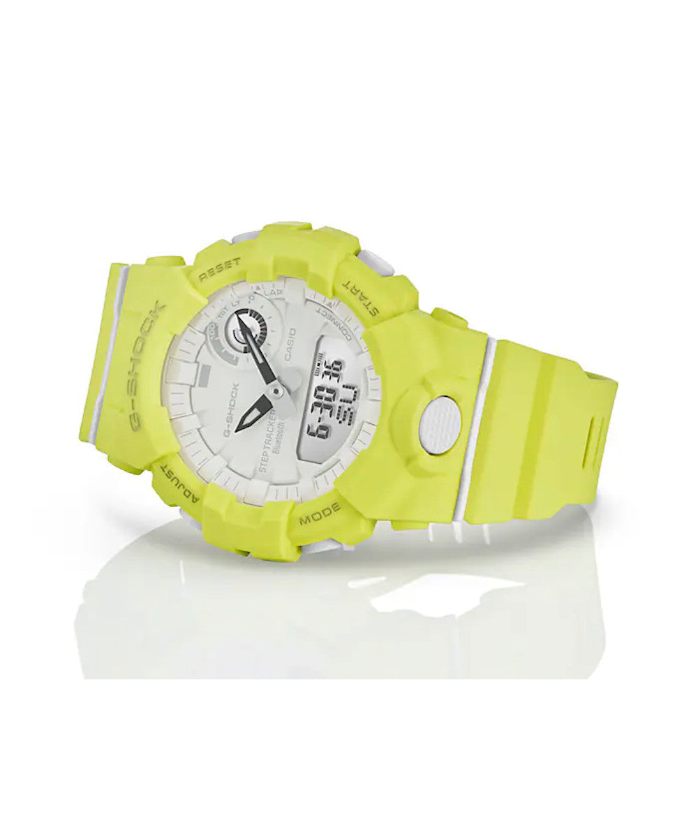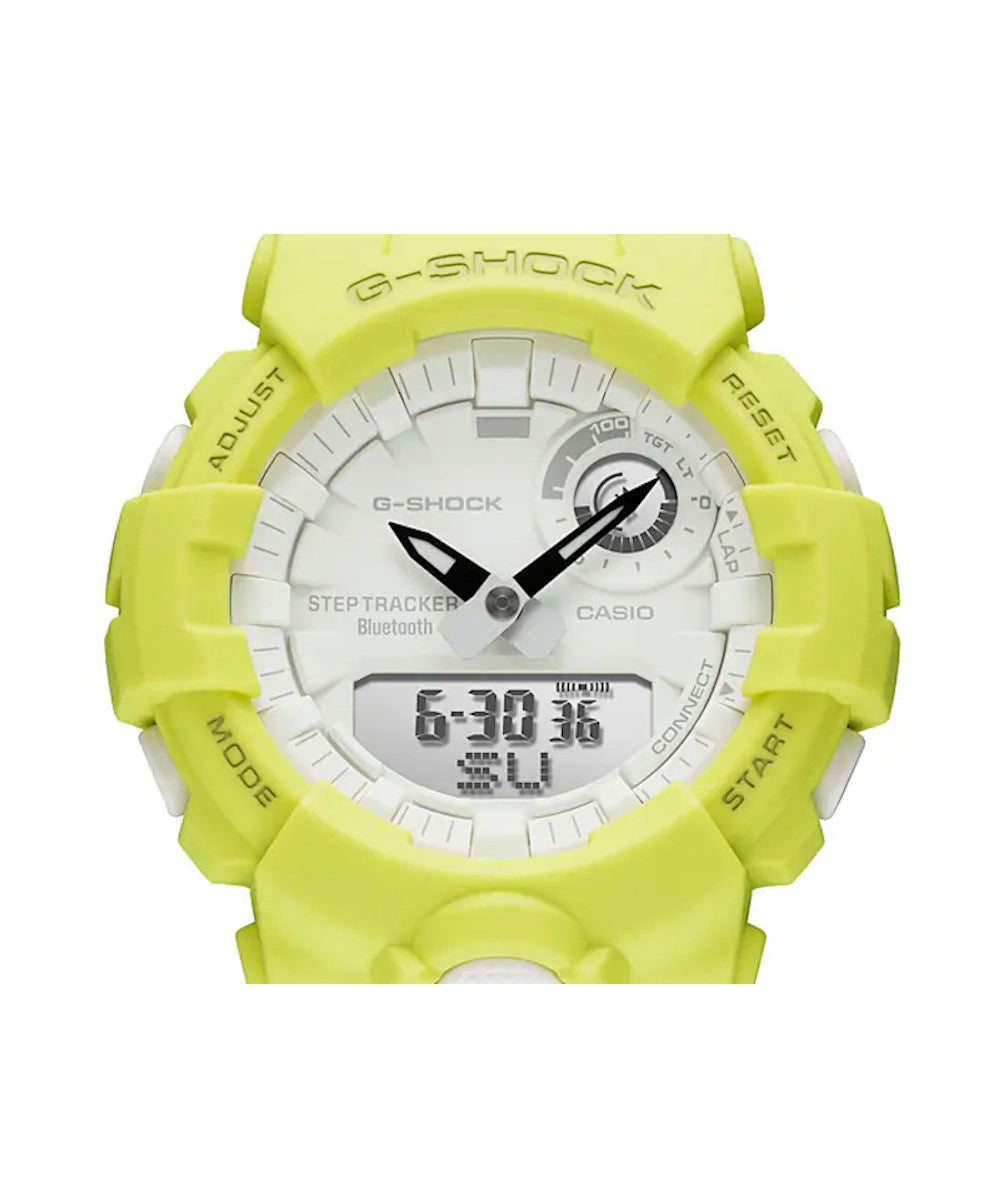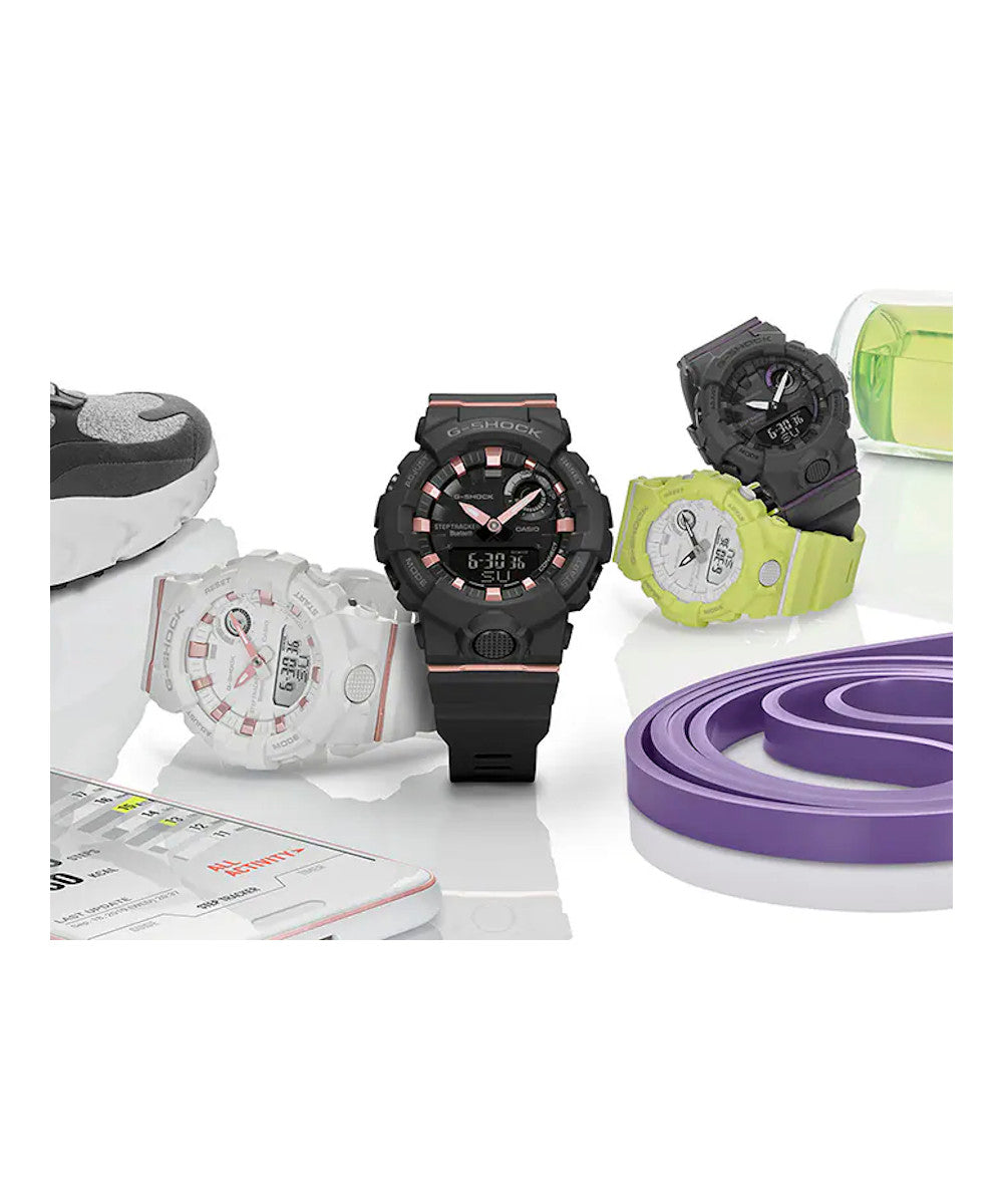 El GMA-B800-9ADR es una versión compacta del clásico modelo deportivo B800, ideal para quienes buscan un reloj resistente y moderno. Ofrece conectividad Bluetooth con la app G-SHOCK MOVE para registrar pasos y actividad física, combinando estilo y funcionalidad.