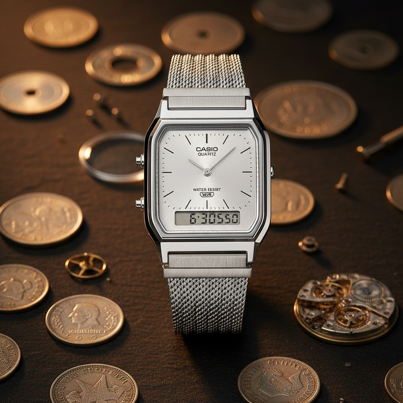 RELOJ CASIO VINTAGE AQ-230EM-7ADF - BLANCO