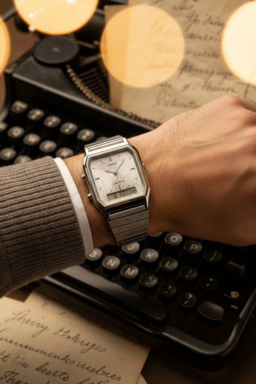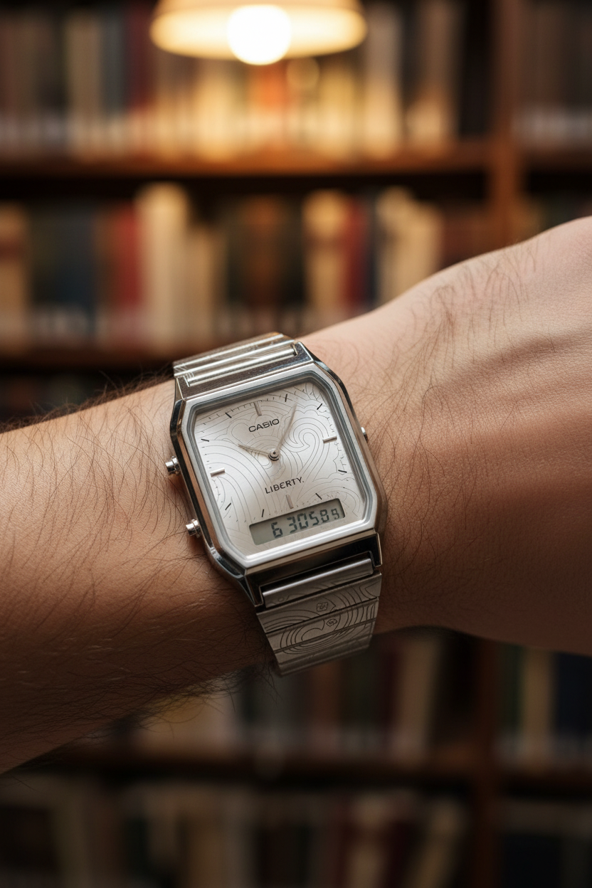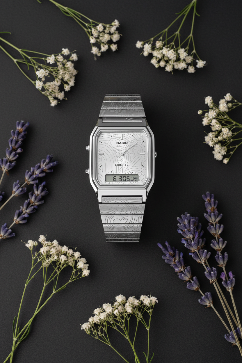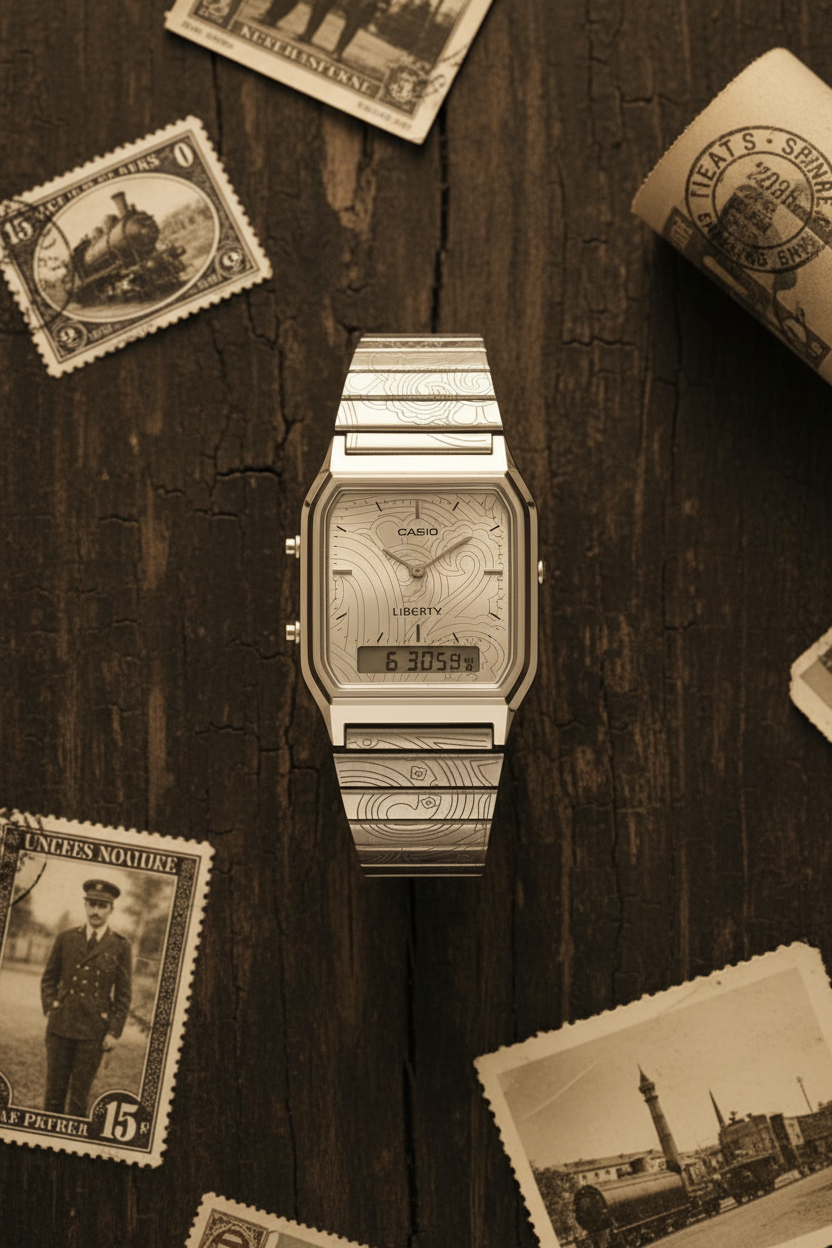 | Estilo | Reloj **retro** de edición limitada, mezcla de estética rectangular clásica AQ‑230 con el diseño artístico de Liberty, pensado para uso diario elegante y para coleccionistas de colaboraciones especiales. |