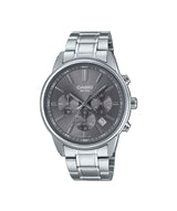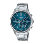 El Casio MTP-E515D-2A1VDF es un reloj cronógrafo para hombre con caja y brazalete de acero inoxidable, esfera azul metálica y tres subesferas que muestran formato 24 horas y medida del cronómetro. Incorpora movimiento de cuarzo preciso, cristal mineral y resistencia al agua de 50 metros, ofreciendo un diseño elegante y deportivo ideal para uso diario y ocasiones formales.