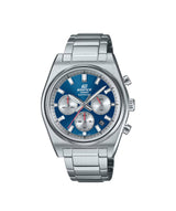 El Casio Edifice EFB-730D-2BVUDF es un cronógrafo analógico de cuarzo inspirado en el automovilismo clásico que combina una elegante carátula azul tipo sunray con construcción completa en acero inoxidable y cristal de zafiro resistente a rayones. Con un diámetro de caja compacto de 40 mm, incorpora función cronógrafo, indicador de fecha, manecillas luminiscentes y resistencia al agua de 100 metros, ideal para el hombre moderno que busca versatilidad desde eventos casuales hasta reuniones de negocios.