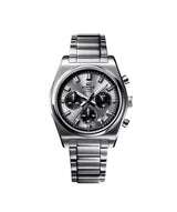 | Funciones principales | Hora (horas, minutos, segundos), indicador de fecha a las 3 en punto, indicador de 24 horas, cronógrafo 1 segundo (capacidad 59'59), modos de tiempo transcurrido, tiempo fraccionado y tiempos 1°-2° lugar |