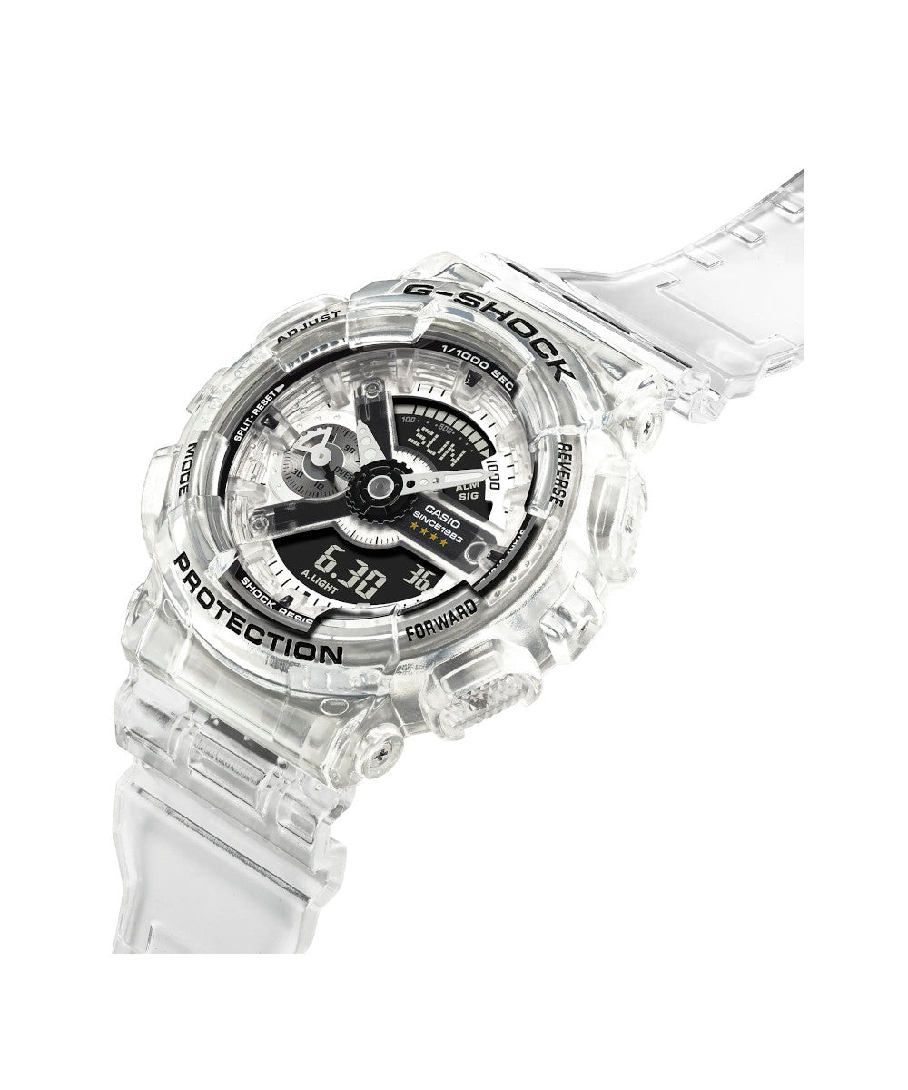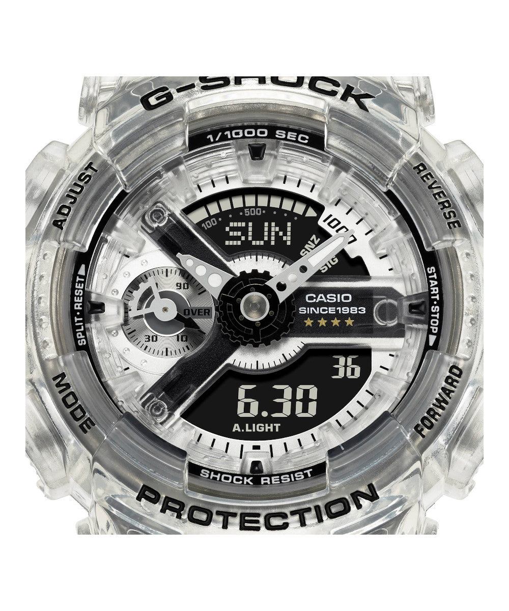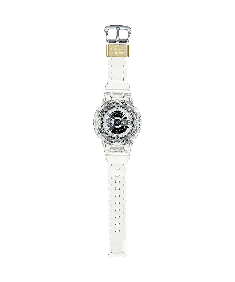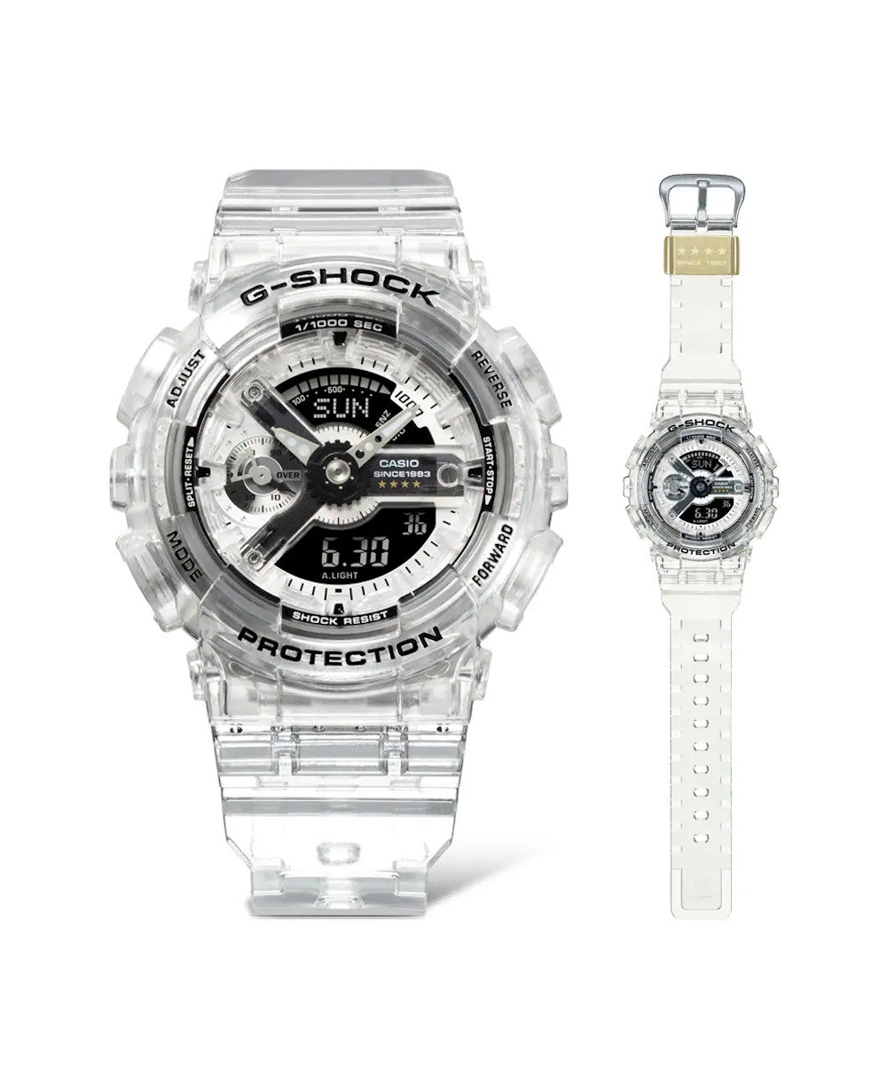 Exprésese sin complejos con la línea Clear Remix del 40.º aniversario de G-SHOCK: diseños de G-SHOCK populares deconstruidos con componentes transparentes para obtener el aspecto más translúcido hasta ahora. Los materiales transparentes de la correa, la carcasa, el dial, la pantalla LCD y los botones proporcionan una vista interna del sustrato del módulo impreso con la marca G y el logotipo de G-SHOCK. La parte posterior de la carcasa cuenta con el logotipo del 40.º aniversario diseñado por Eric Haze y el sujetador de la correa tiene grabadas cuatro estrellas en reconocimiento a este especial aniversario. Estos detalles y el uso sin precedentes de una carcasa transparente hecha de diamida de fibra de vidrio transparente ofrecen un diseño singular digno de un excepcional G-SHOCK de edición limitada. La nueva línea incluye relojes modelados que se basan en varios relojes G-SHOCK icónicos: el primer G-SHOCK, el DW-5000; el DW-5600 clásico digital; el DW-6900 con un distintivo diseño de botón frontal; el GA-2100/GMA-S2100 o el GA-110/GMA-S110, que se puede usar solo o como parte de un conjunto. Carcasa transparente: DW-6940RX, GA-114RX, GMA-S114RX Dial transparente: DW-6940RX, GA-114RX, GMA-S114RX, GA-2140RX, GMA-S2140RX Pantalla LCD transparente*: DW-5040RX, DWE-5640RX, DW-6940RX Botones transparentes: GA-114RX, GMA-S114RX * La pantalla digital puede ser difícil de leer en determinados ángulos de visualización debido a los materiales transparentes utilizados en la pantalla LCD.