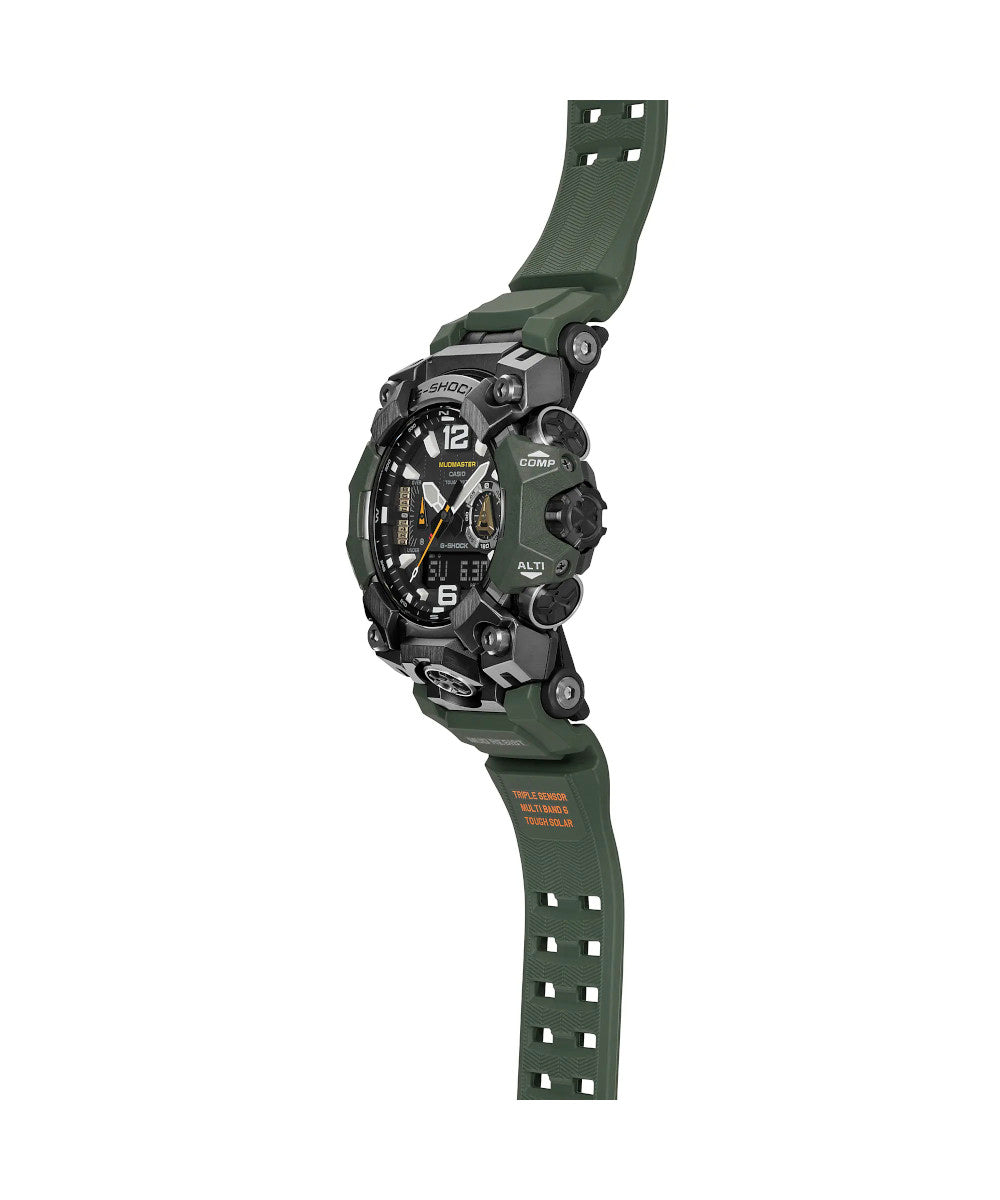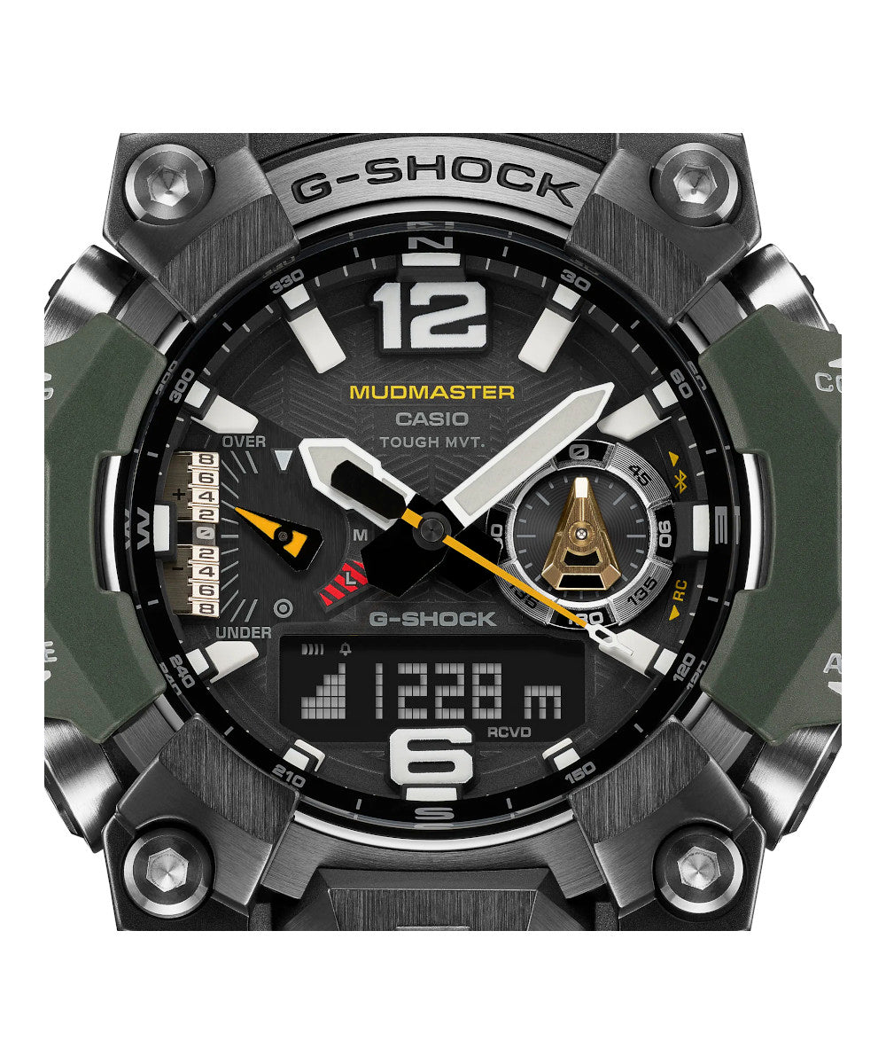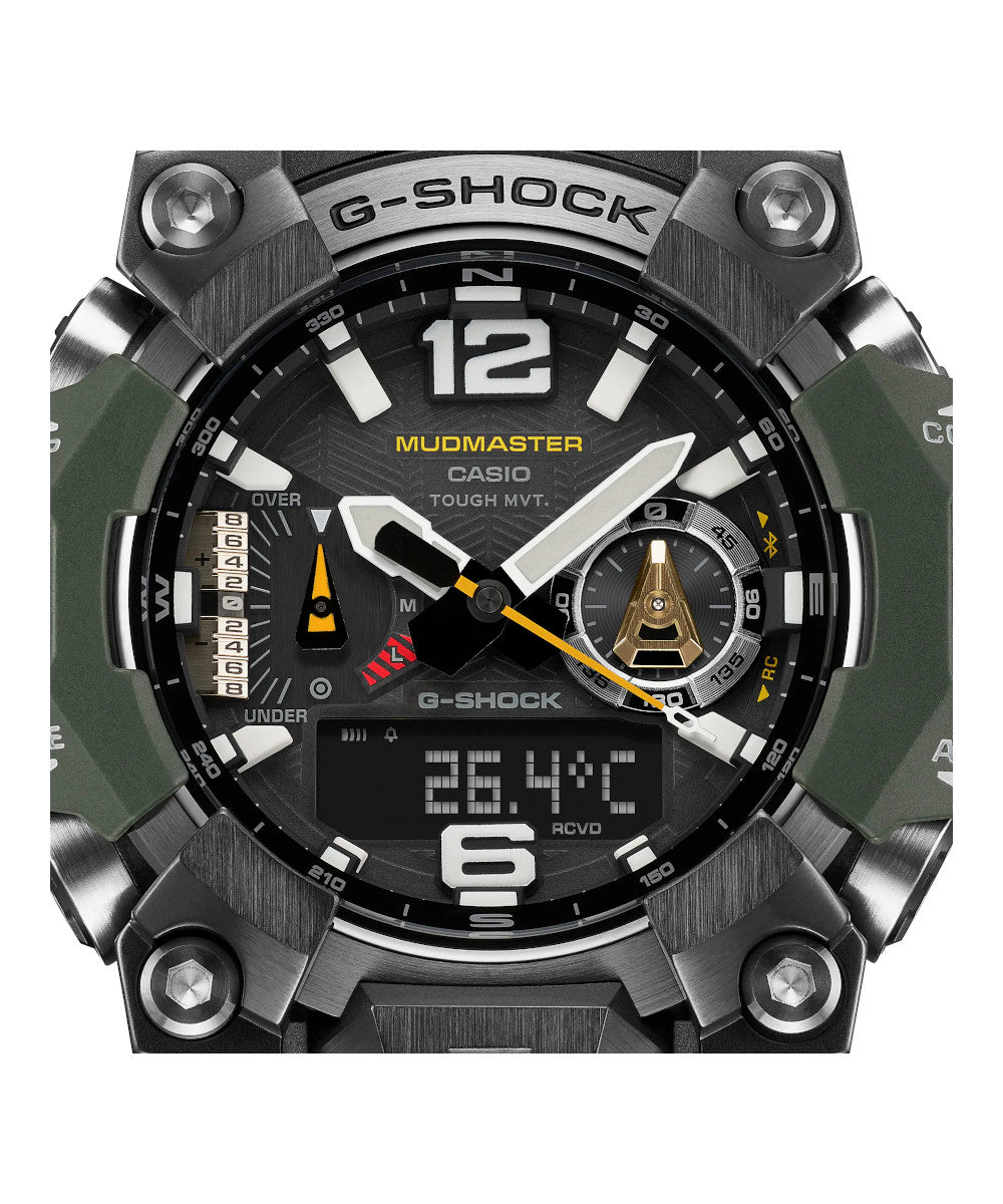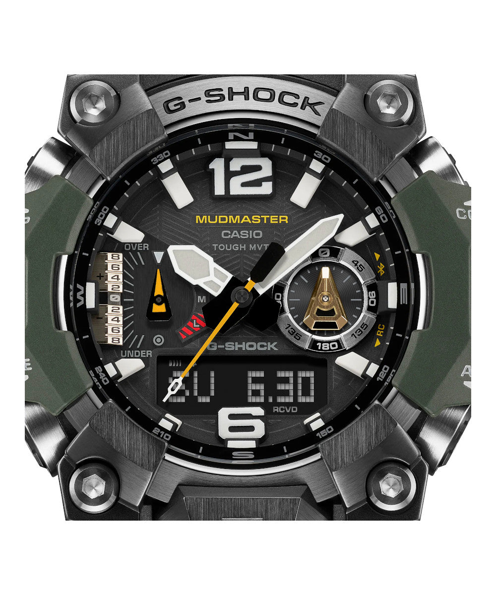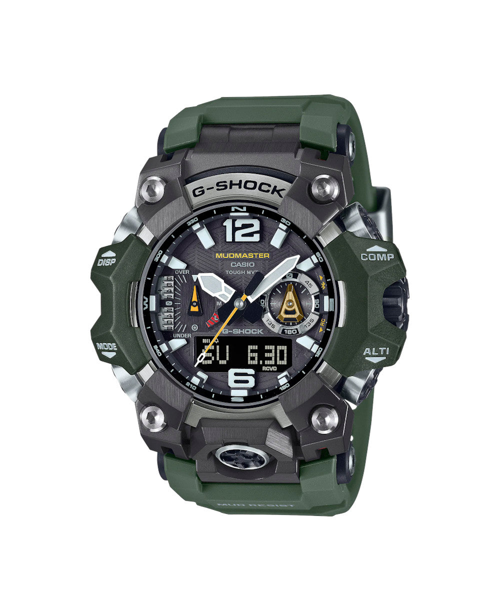 Este reloj ofrece un ajuste más cómodo y una durabilidad excepcional con un exterior robusto que incorpora una estructura de protección construida con componentes metálicos. Los relojes de la línea G-SHOCK Master of G, desarrollados para profesionales que trabajan en los entornos más hostiles, vienen equipados con una funcionalidad aún más resistente. Y el MUDMASTER lleva esto aún más lejos con la capacidad de manejar los entornos terrestres más difíciles, ganándose el reconocimiento y la confianza de los guardabosques y los equipos de rescate que operan en entornos extremos. El GWG-B1000 de tamaño cómodo presenta un exterior de metal elaborado con técnicas de forjado de alta precisión y una carcasa de resina reforzada con fibra de carbono que ofrece alta resistencia y durabilidad excepcional. El reloj, controlado por radio y alimentado por energía solar, también está equipado con un sensor triple que lo mantiene actualizado con lecturas de dirección, altitud, presión barométrica y temperatura