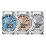 El Casio G-SHOCK GA-2100BM-7A5DR luce un diseño moderno en rosado con detalles metálicos. Delgado, ligero y resistente al agua 200 m, combina elegancia y durabilidad con funciones prácticas como hora mundial, alarmas y cronómetro.
