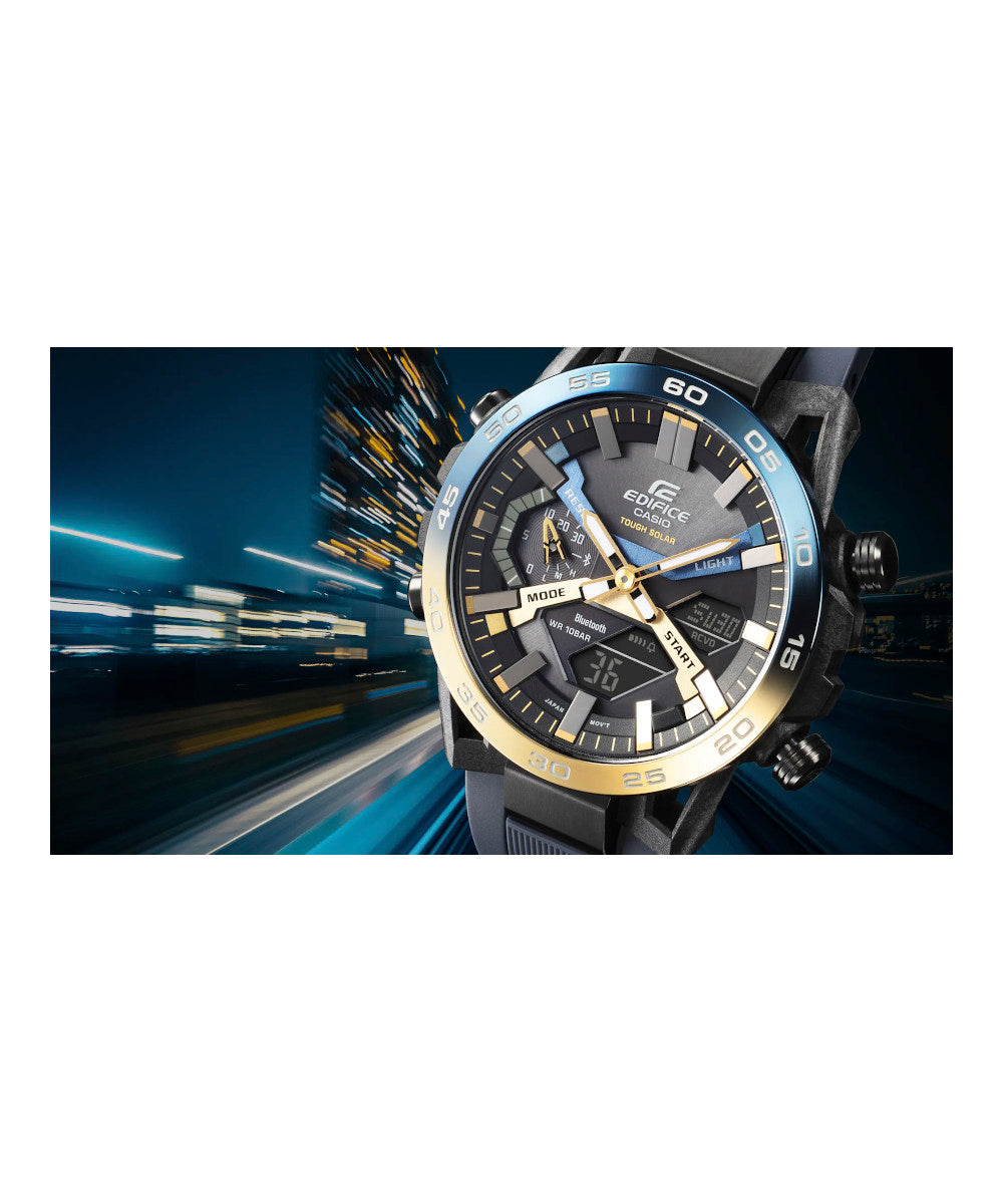 El Casio Edifice ECB-2000NP combina un diseño inspirado en el mundo automotriz con tecnología de vanguardia para ofrecer estilo, funcionalidad y conectividad. Su caja reforzada con carbono, gradación de color en el bisel y conectividad Bluetooth lo hacen ideal para quienes exigen estética y rendimiento.