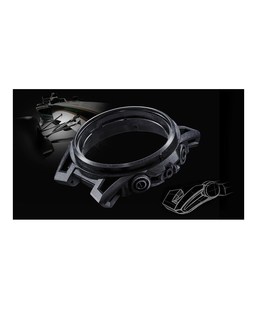 FUNCIONES: Diseño de caja único con un motivo inspirado en la suspensión de los autos de fórmula. Al igual que la suspensión de cuatro brazos que se usa en los autos de carreras, con dos brazos arriba y dos abajo, las orejetas están configuradas en una disposición de cuatro brazos. Por primera vez en la línea EDIFICE, se utiliza resina reforzada con fibra de carbono para la caja. Aprovechando la combinación característica de resistencia y ligereza del material, el reloj ofrece la durabilidad y el ajuste para soportar incluso el uso intensivo por parte de los mecánicos de carreras..