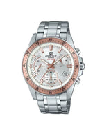 El Casio EFV-540D-1A2VUDF es un cronógrafo analógico con diseño deportivo y sofisticado. Su caja y brazalete de acero inoxidable, junto con la esfera azul-negra y una resistencia de 100 m, lo hacen ideal para uso diario y momentos activos.