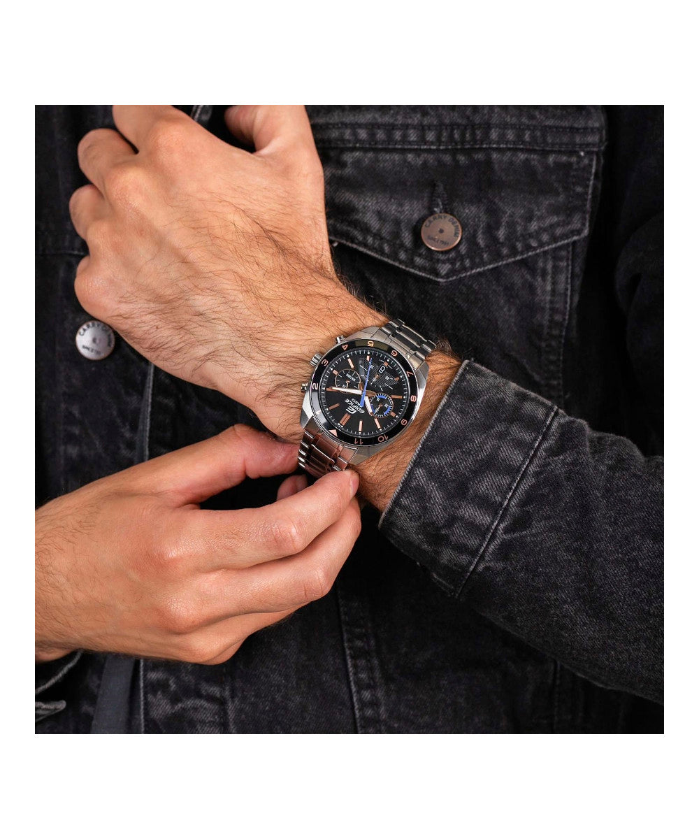FUNCIONES: Reloj EDIFCE, 100 metros de resistencia al agua, cronómetro 1 segundo, indicador de fecha, caja en acero, pulso en acero.