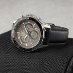 Casio Edifice EFR-552L-5AVUDF para hombre. Reloj cronógrafo con esfera café y correa de cuero genuino que aporta elegancia y confort. Caja de acero, cristal mineral y resistencia al agua 100 m. Combina precisión, estilo ejecutivo y un toque deportivo ideal para cualquier ocasión.