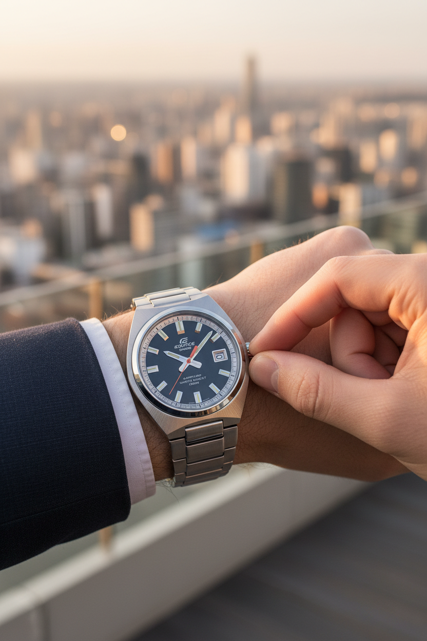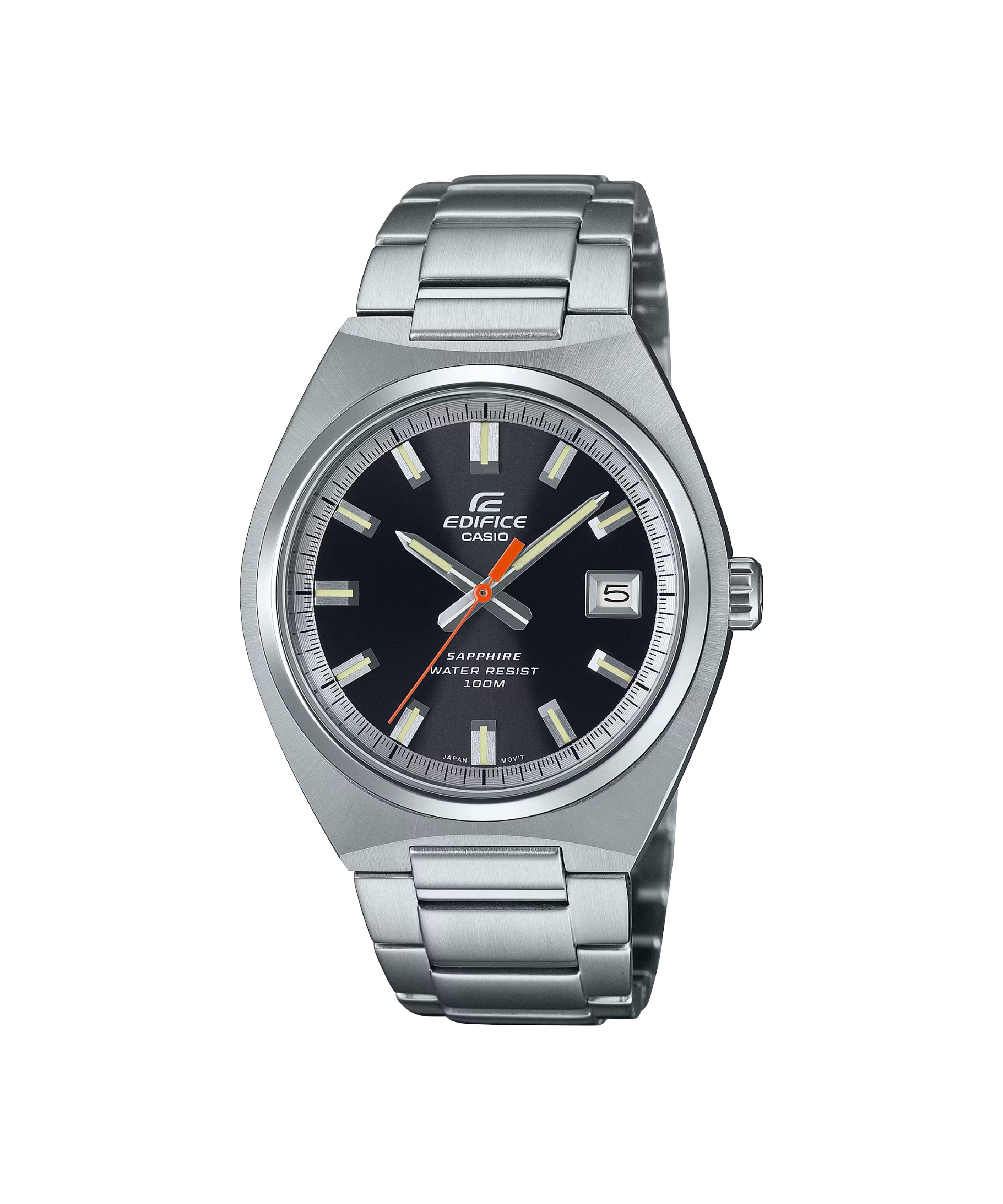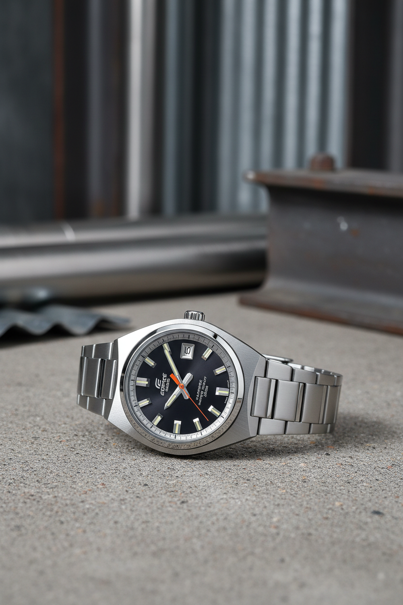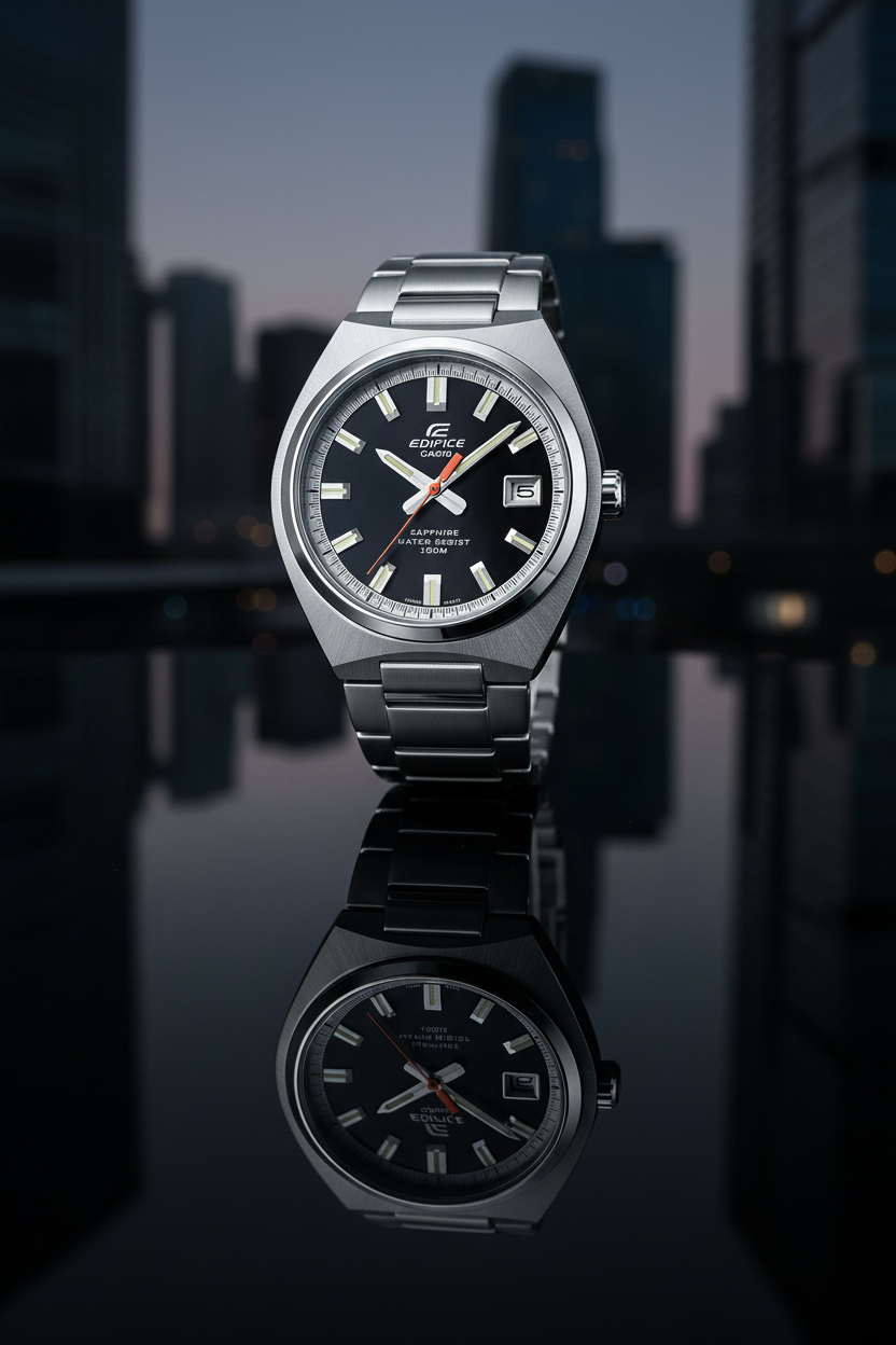 Reloj Casio Edifice EFB-109D-1AVDF clásico-deportivo en acero inoxidable con esfera negra brillante y toque rojo en el segundero, cristal de zafiro, resistencia al agua 100 m, ventana de fecha y diseño delgado ideal para uso diario y oficina.