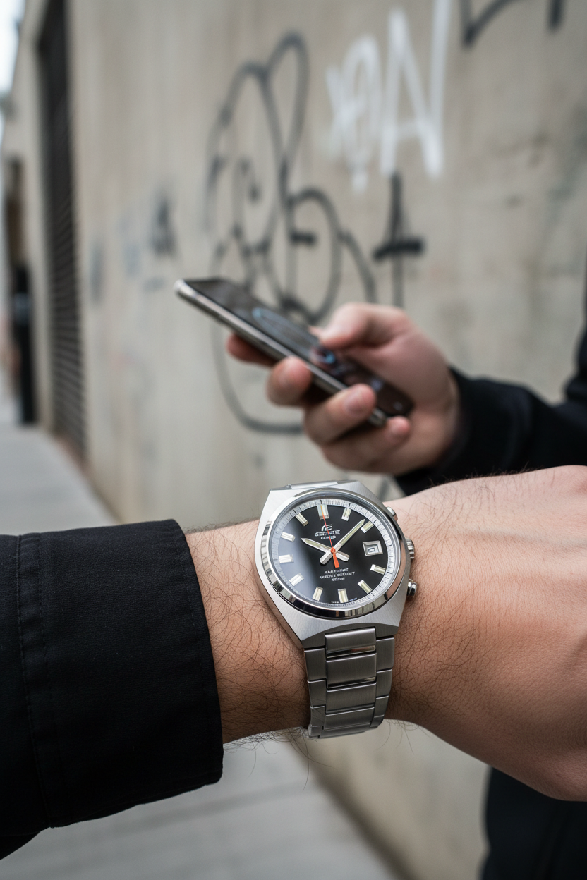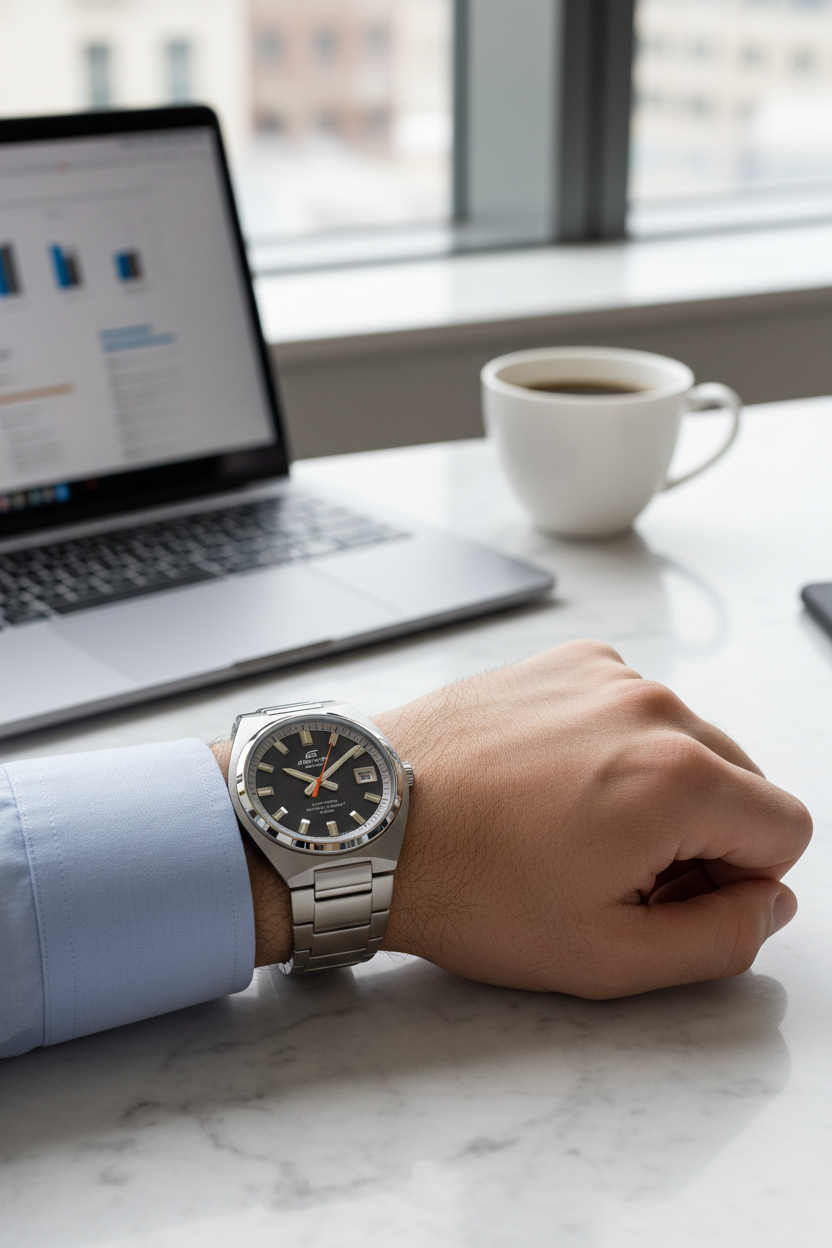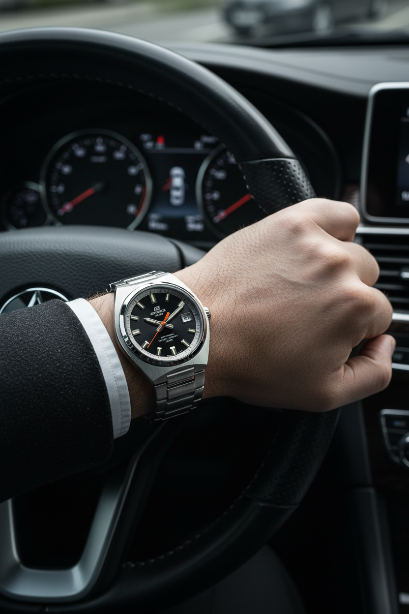 Funciones principales Hora analógica con tres agujas (horas, minutos y segundos) y ventana de fecha a las 3 en punto; reloj de estilo deportivo‑clásico inspirado en autos deportivos, ideal para uso diario, oficina y ocasiones formales.