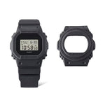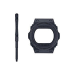 Únase a las celebraciones del 40 aniversario que marcan los hitos de G-SHOCK con una selección de renacimientos exclusivos en negro sólido y probado en el tiempo. En homenaje a la evolución de la marca, estos diseños especiales conmemoran modelos icónicos del pasado con sus nombres estampados en caliente en la correa con un efecto texturizado y dentado. En el DWE-5657, DW-6640 y GA-2140, un botón lateral está grabado con una estrella en un guiño al 40 aniversario, al igual que el GA-114 con una estrella impresa en el cristal del reloj. La correa y el bisel de todos los modelos de la línea están hechos con resinas de base biológica. El logotipo del 40 aniversario diseñado por Eric Haze está grabado en la parte posterior de la caja y también aparece en silueta cuando se presiona el botón de luz en el DWE-5657 y DW-6640. Con cuatro estrellas por 40 grabadas en el lazo de la banda y otros detalles especiales, estos relojes de edición limitada son herederos de la historia de G-SHOCK. El DWE-5657 viene con un bisel DW-5700 intercambiable. ¡Obtenga dos diseños icónicos de G-SHOCK con un solo reloj!
