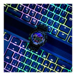 Descubre la gama Virtual Rainbow y explora el colorido espectro que surge cuando la estética del mundo de los juegos de la cibertecnología se une a la búsqueda de G-SHOCK con la máxima resistencia. Los biseles y las correas son de color negro brillante, mientras que las esferas cuentan con deposición de vapor en los colores del arco iris y diseño multicolor. El resultado es una gama de estilos llamativos en colores fríos que se iluminan en la oscuridad. Triunfará con cualquier estilo de moda.