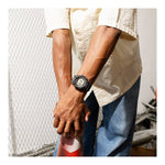 FUNCIONES: RELOJ G-SHOCK, 200 metros de resistencia al agua, resistente a impactos, cronómetro 1/100 segundos, calendario automático completo hasta el año 2099, cronometraje regular, hora mundial, 5 alarmas diarias independientes (4 alarmas únicas y 1 alarma de repetición), luz LED completamente automática.