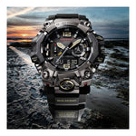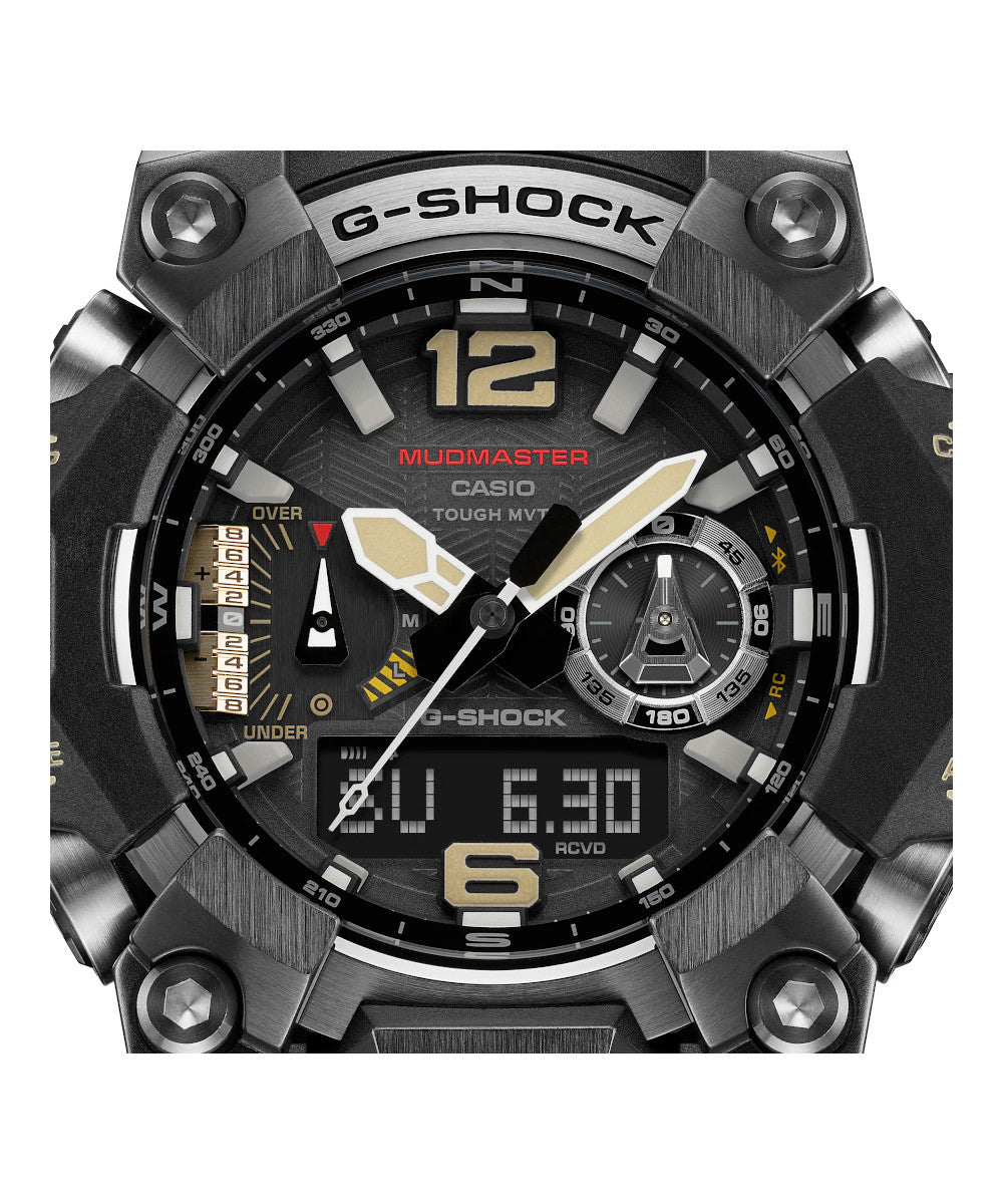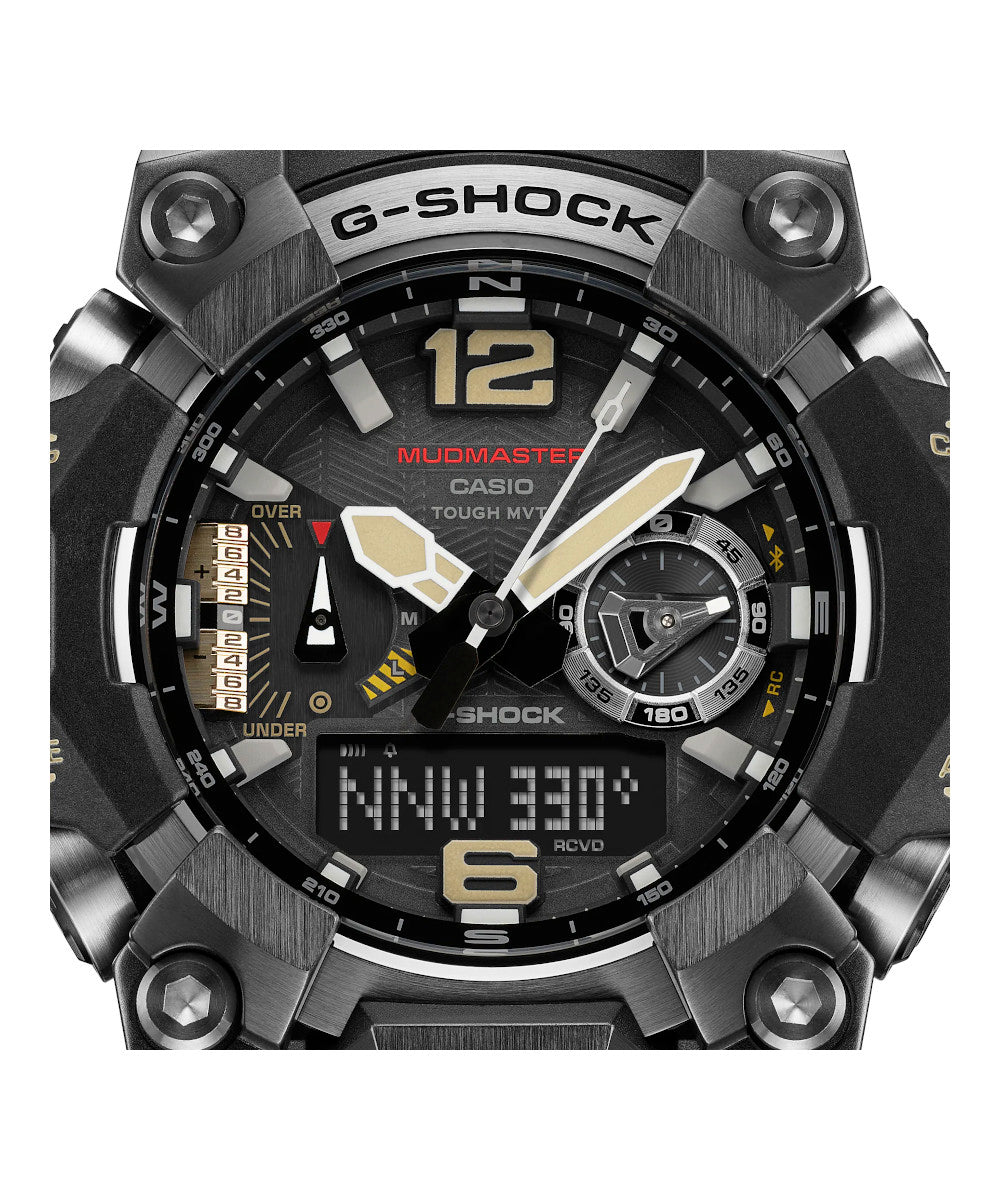 Este reloj ofrece un ajuste más cómodo y una durabilidad excepcional con un exterior robusto que incorpora una estructura de protección construida con componentes metálicos. Los relojes de la línea G-SHOCK Master of G, desarrollados para profesionales que trabajan en los entornos más hostiles, vienen equipados con una funcionalidad aún más resistente. Y el MUDMASTER lleva esto aún más lejos con la capacidad de manejar los entornos terrestres más difíciles, ganándose el reconocimiento y la confianza de los guardabosques y los equipos de rescate que operan en entornos extremos. El GWG-B1000 de tamaño cómodo presenta un exterior de metal elaborado con técnicas de forjado de alta precisión y una carcasa de resina reforzada con fibra de carbono que ofrece alta resistencia y durabilidad excepcional. El reloj, controlado por radio y alimentado por energía solar, también está equipado con un sensor triple que lo mantiene actualizado con lecturas de dirección, altitud, presión barométrica y temperatura