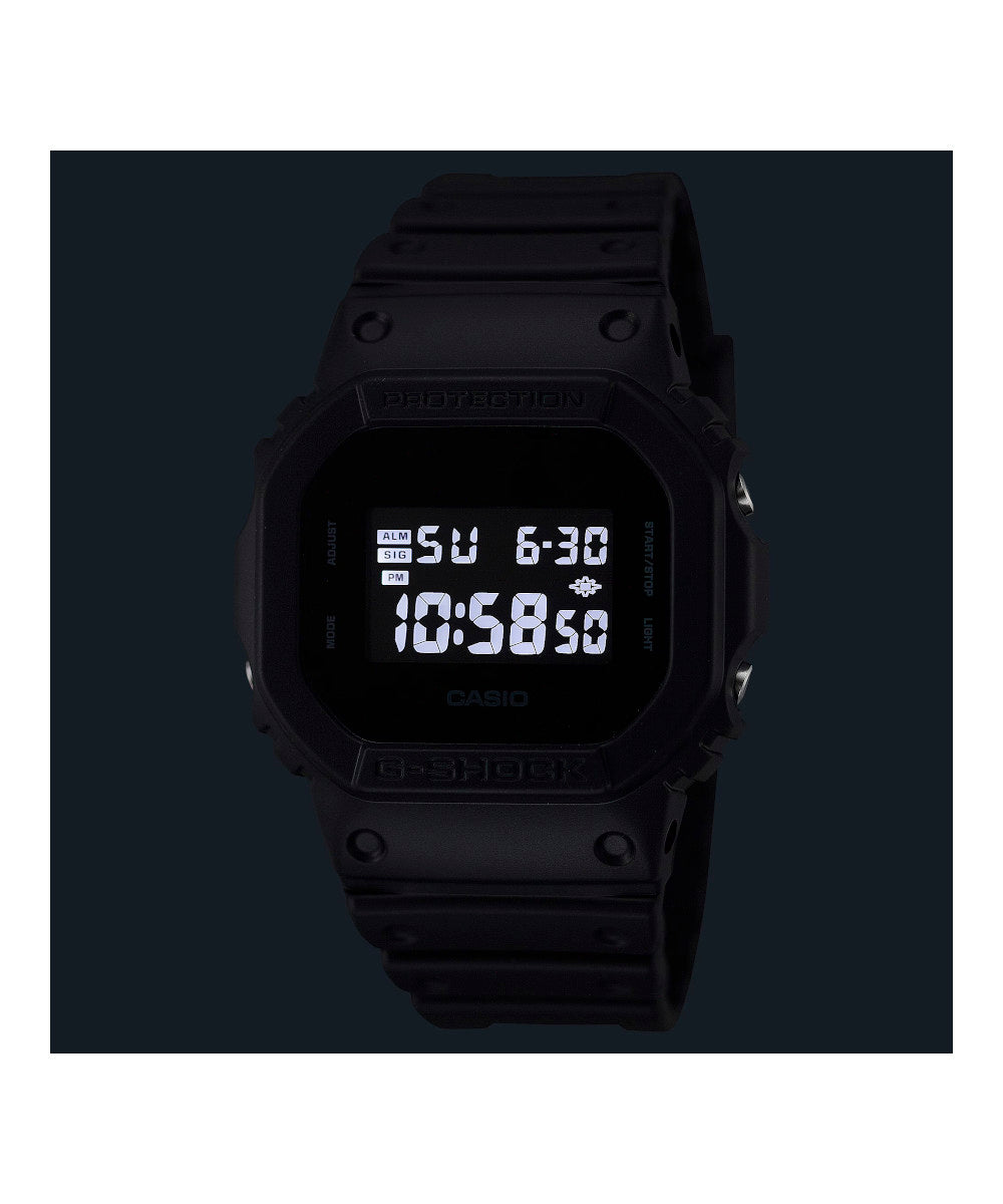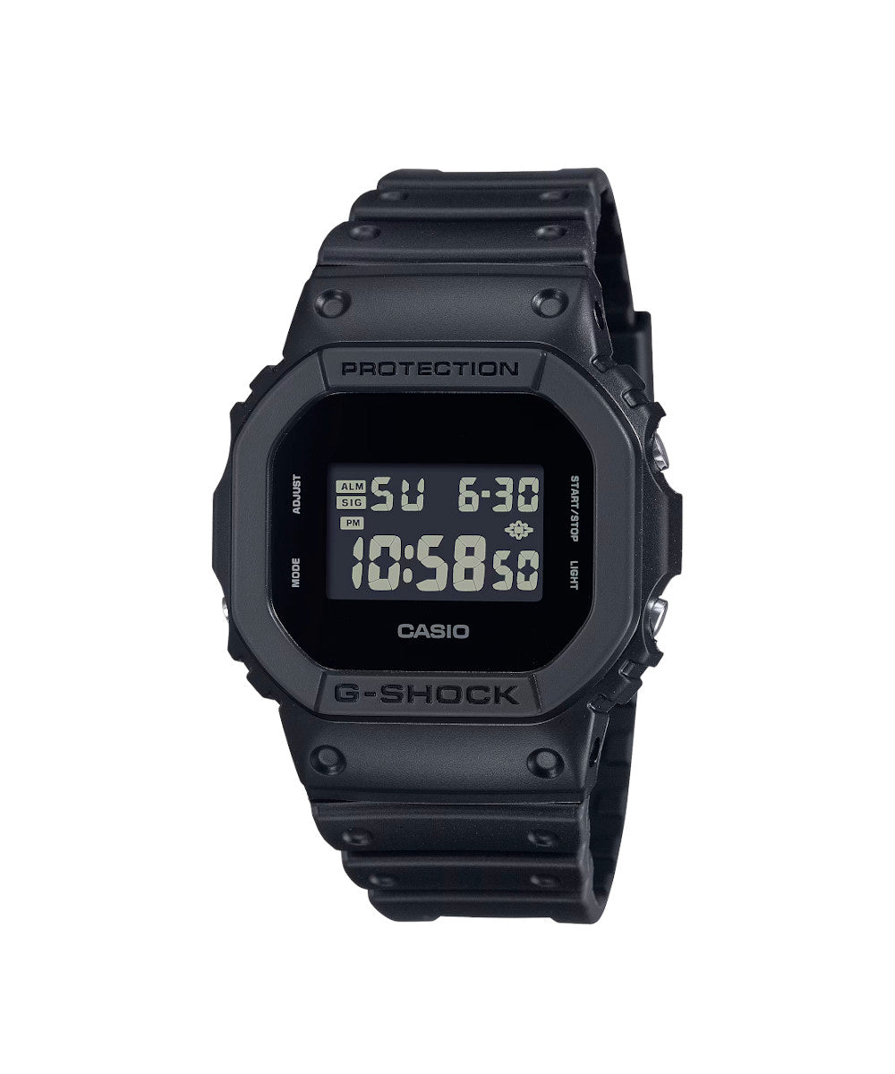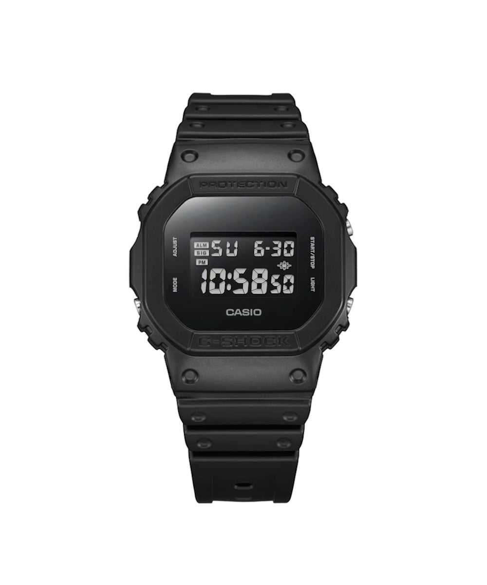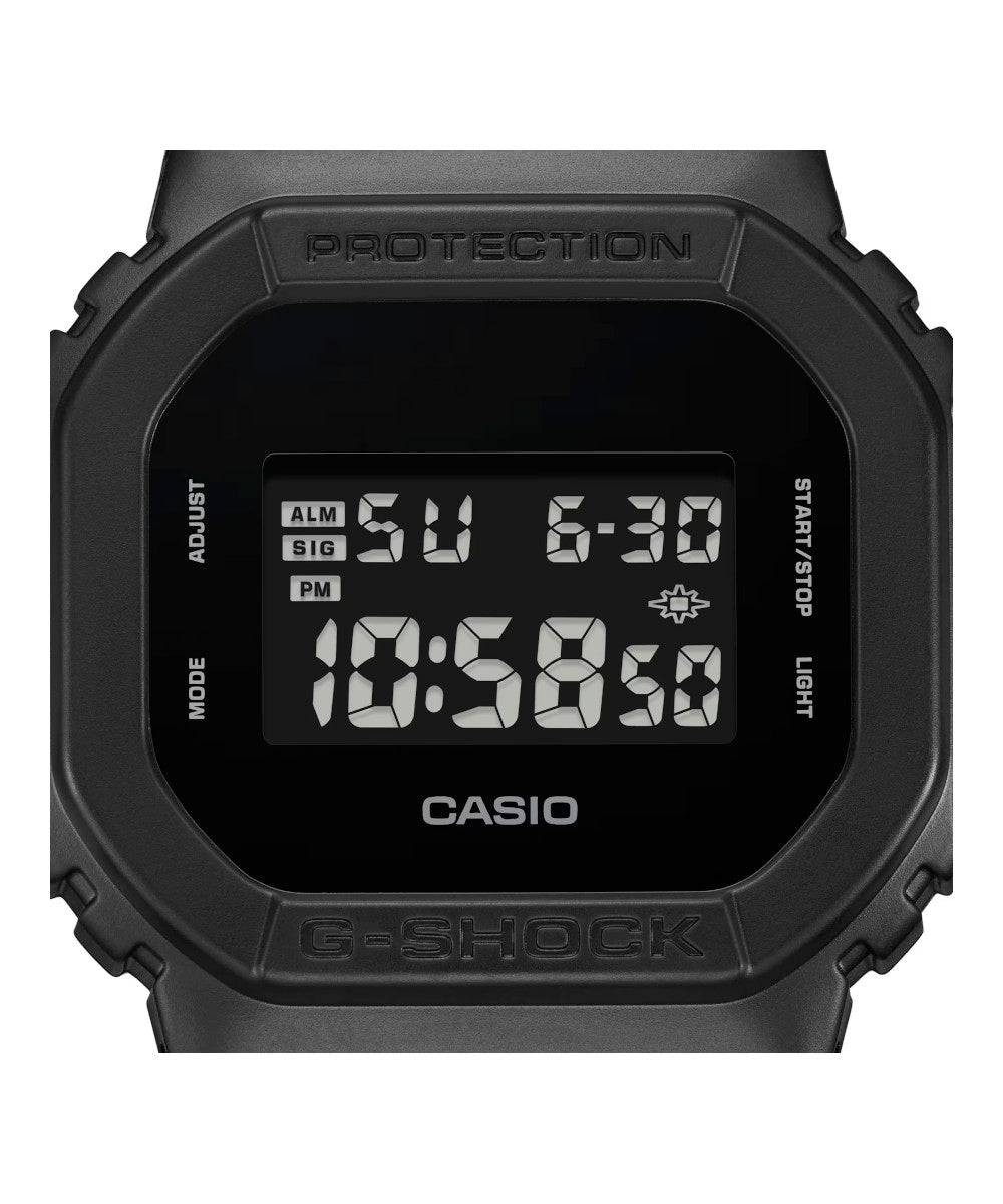 El DW-5600UBB-1DR mantiene el icónico diseño cuadrado del clásico G-SHOCK, con una estética minimalista en negro total. Su estilo monocromático lo convierte en una pieza moderna y versátil, perfecta para el uso diario o entornos urbanos exigentes.