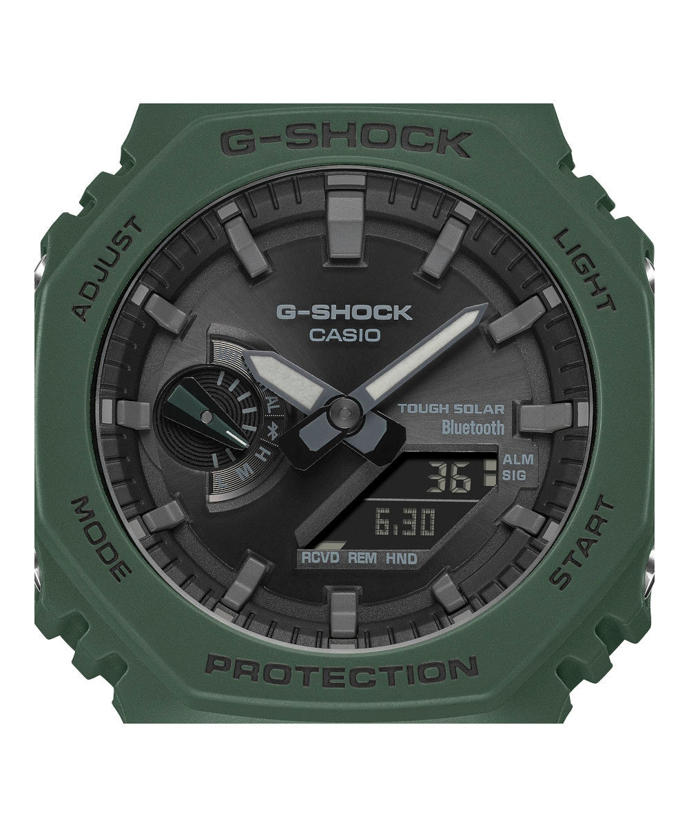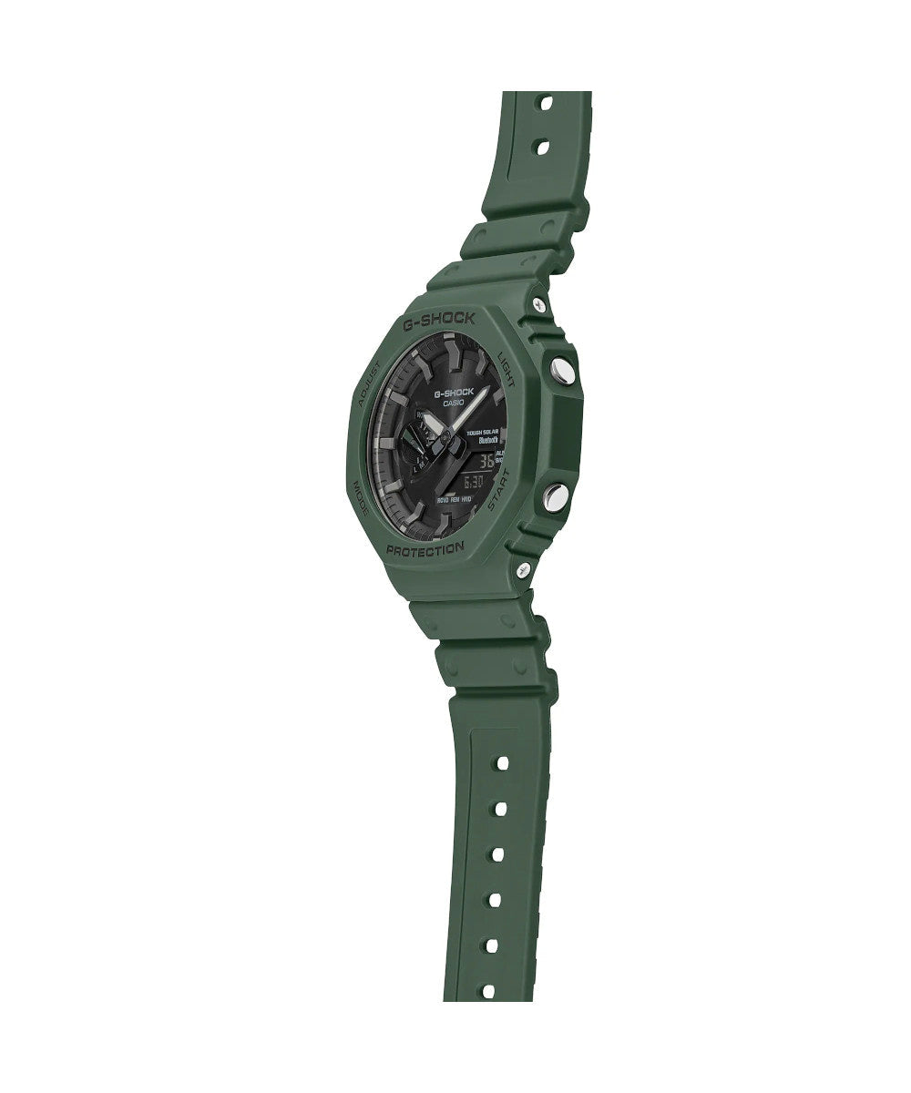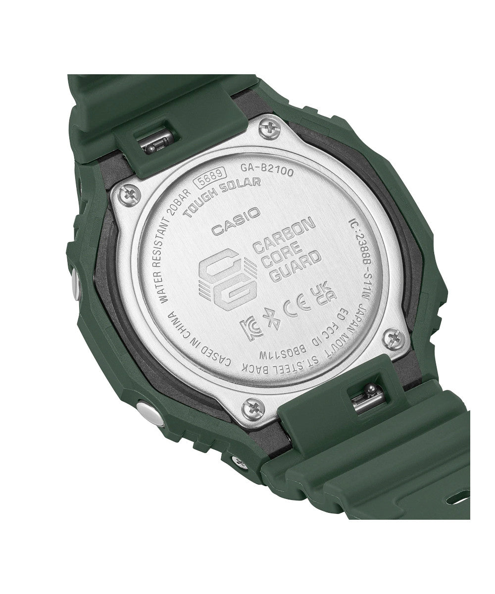 El GA-B2100-3ADR combina el icónico diseño octogonal de G-SHOCK con tecnología moderna y conectividad Bluetooth®. Su tono verde militar y su estructura Carbon Core Guard le dan un estilo resistente y contemporáneo, ideal para un uso urbano o outdoor.