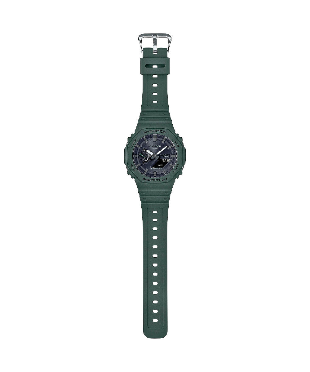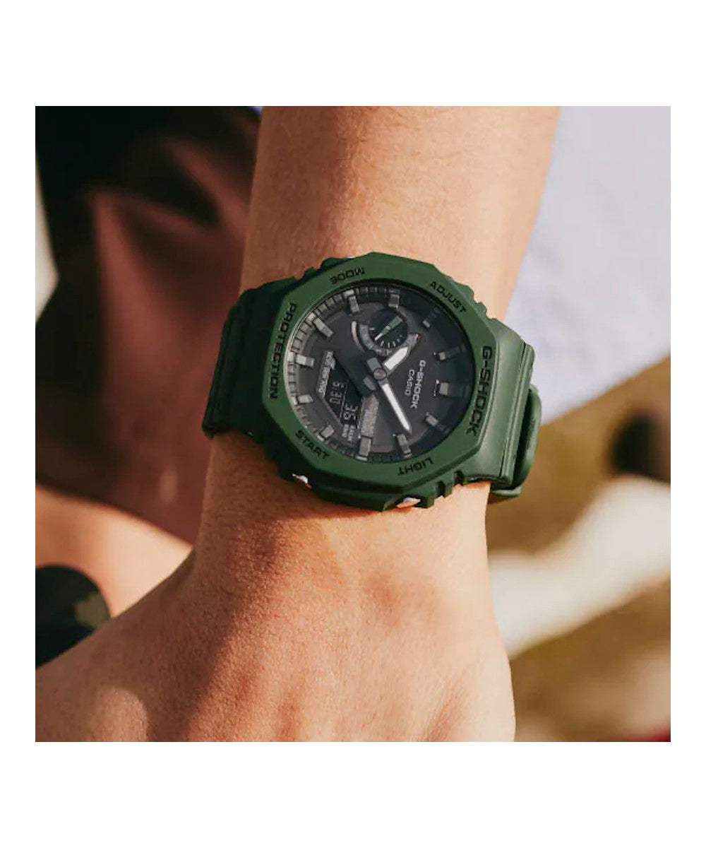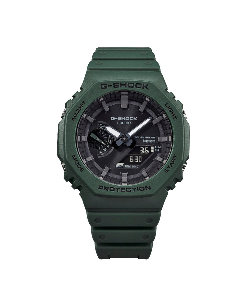 El GA-B2100-3ADR combina el icónico diseño octogonal de G-SHOCK con tecnología moderna y conectividad Bluetooth®. Su tono verde militar y su estructura Carbon Core Guard le dan un estilo resistente y contemporáneo, ideal para un uso urbano o outdoor.