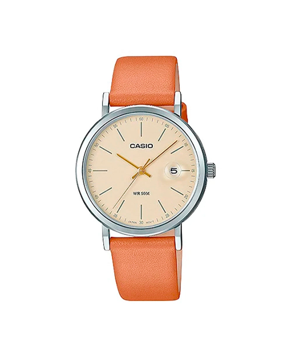 Reloj Fashion CASIO LTP-E175L-5EVDF caja acerada y pulso en cuero para dama