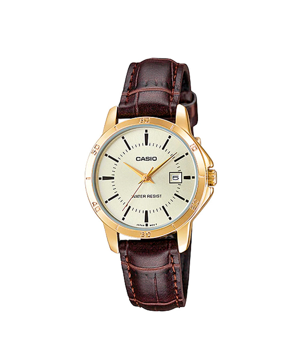 Reloj Fashion CASIO LTP-V004GL-9AUDF caja acerada y pulso en cuero para dama
