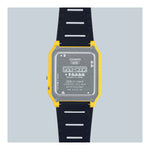 El Casio Vintage CA-53WPC-1BDR une nostalgia y funcionalidad con su icónica calculadora digital. Con diseño retro en negro y amarillo, cronómetro, alarma y calendario, es un clásico ochentero renovado.