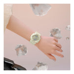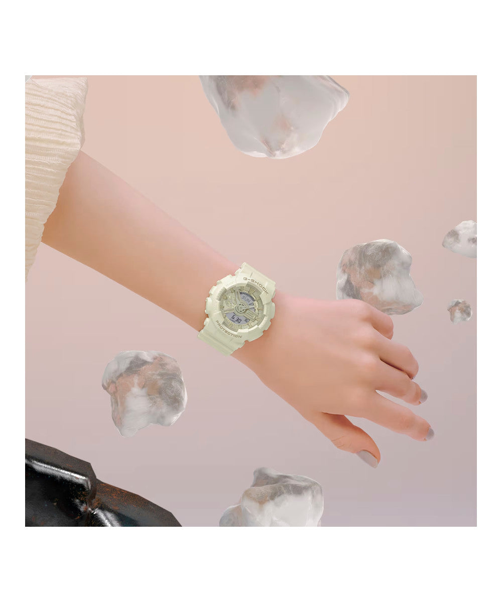 El G-SHOCK GMA-S110ST-7ADR destaca con su diseño blanco stardust, resistente a golpes y agua 200 m. Con hora mundial, cronómetro y alarmas, ofrece estilo moderno y funciones completas en un formato compacto ideal para mujer.