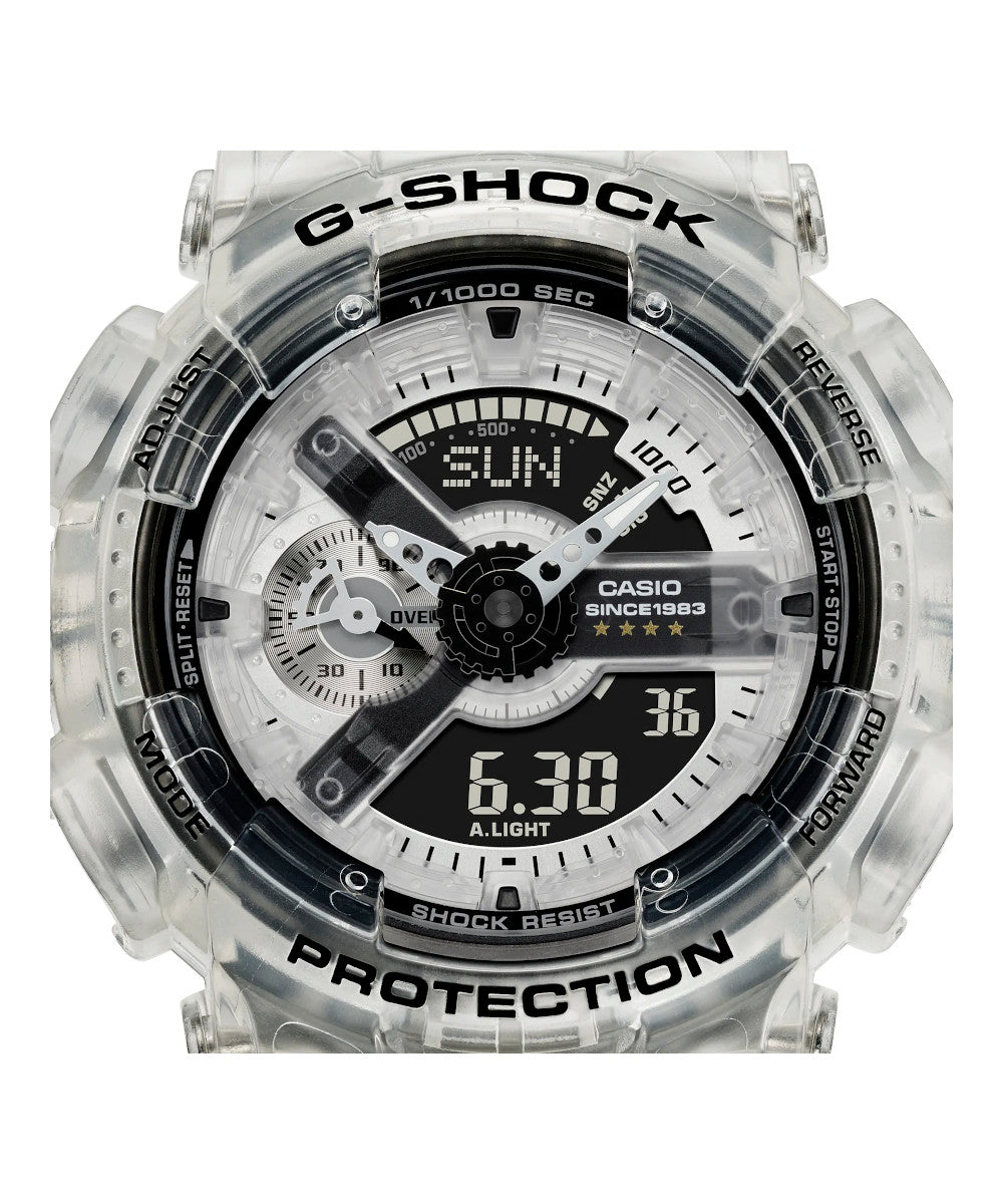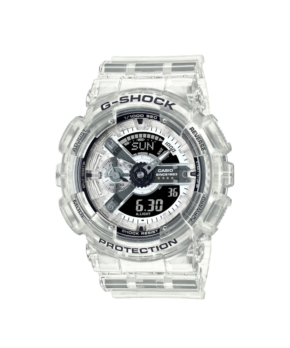 Exprésate con los nuevos modelos Clear Remix del 40.º aniversario de G-SHOCK: populares diseños construidos con componentes transparentes para lograr un look más que claro. Los materiales transparentes de la correa, la carcasa, la esfera, la pantalla LCD y los botones, proporcionan una vista al interior del módulo, donde encontramos la marca G y el logotipo G-SHOCK impresos. En la parte posterior de la carcasa luce el logotipo del 40.º aniversario, diseñado por Eric Haze, y la hebilla de la correa está grabada con cuatro estrellas, haciendo un guiño a este aniversario tan especial