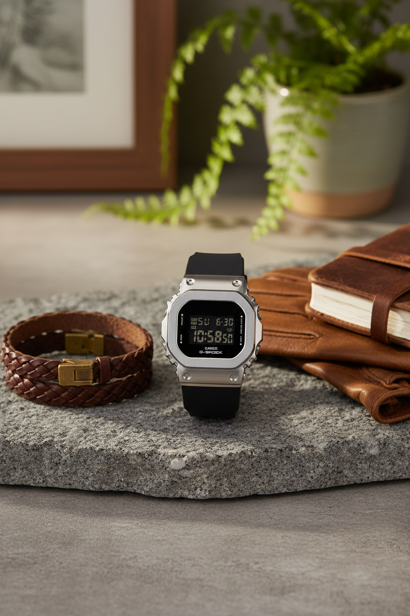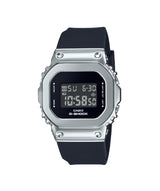 Reloj G-SHOCK GM-S5600U-1DR digital unisex, versión compacta y esbelta de la icónica serie 5600, con bisel de acero inoxidable pulido negro con acabado metálico premium, caja cuadrada de resina negra, resistencia a impactos y al agua 200 m, luz LED Super Illuminator blanca, cronómetro 1/100 seg, temporizador, alarmas múltiples y calendario automático.
