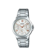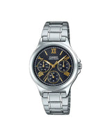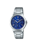 Casio LTP-V300D-2A2UDF para mujer. Esfera azul con subesferas funcionales y correa de acero inoxidable. Referencia LTP-V300D-2A2UDF, un reloj moderno, versátil y elegante para cualquier ocasión.