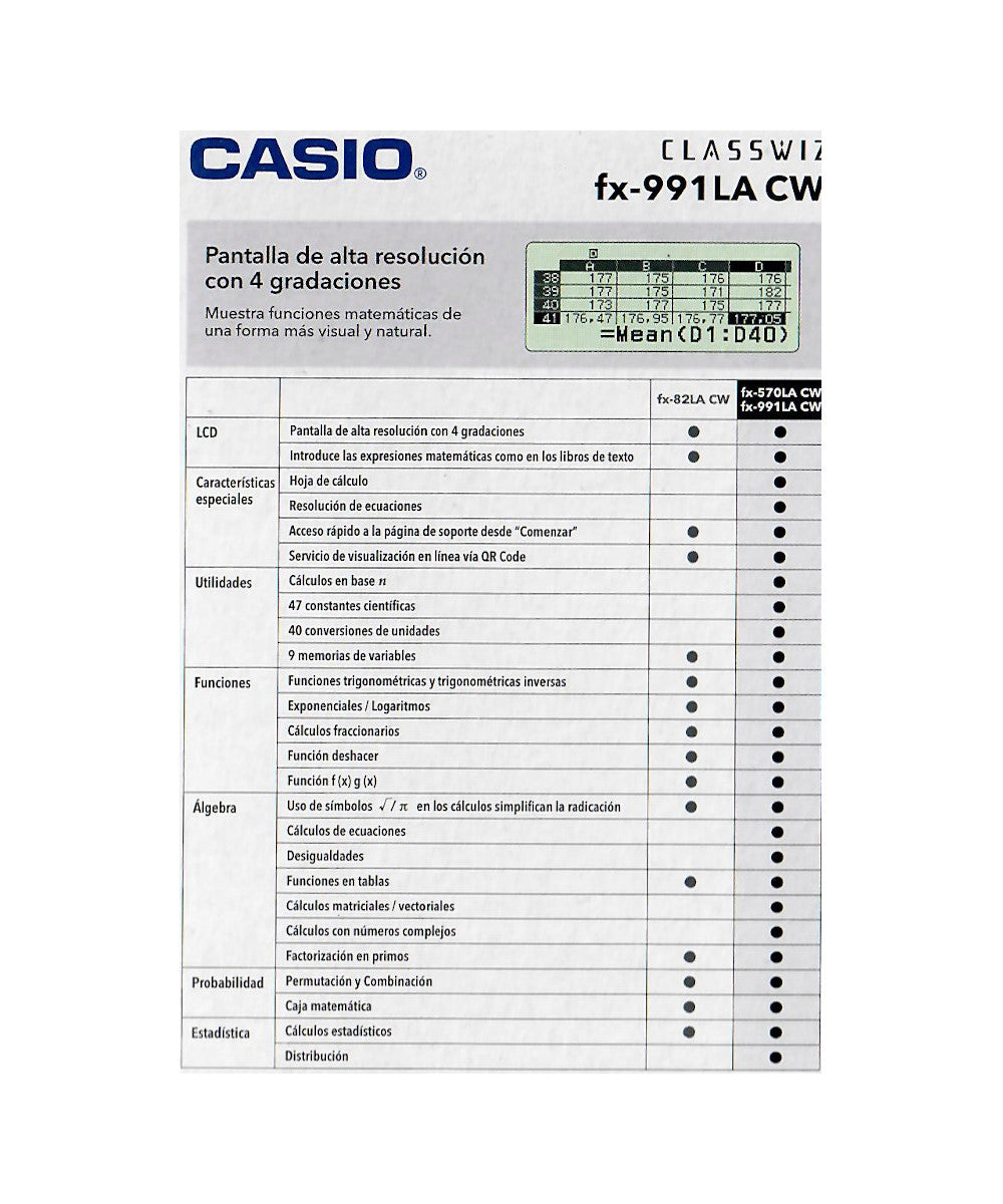 CALCULADORA CASIO ESCUELA Y UNIVERSIDAD FX-991LACW-W-DT -NEGRA