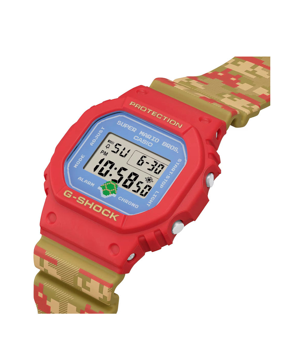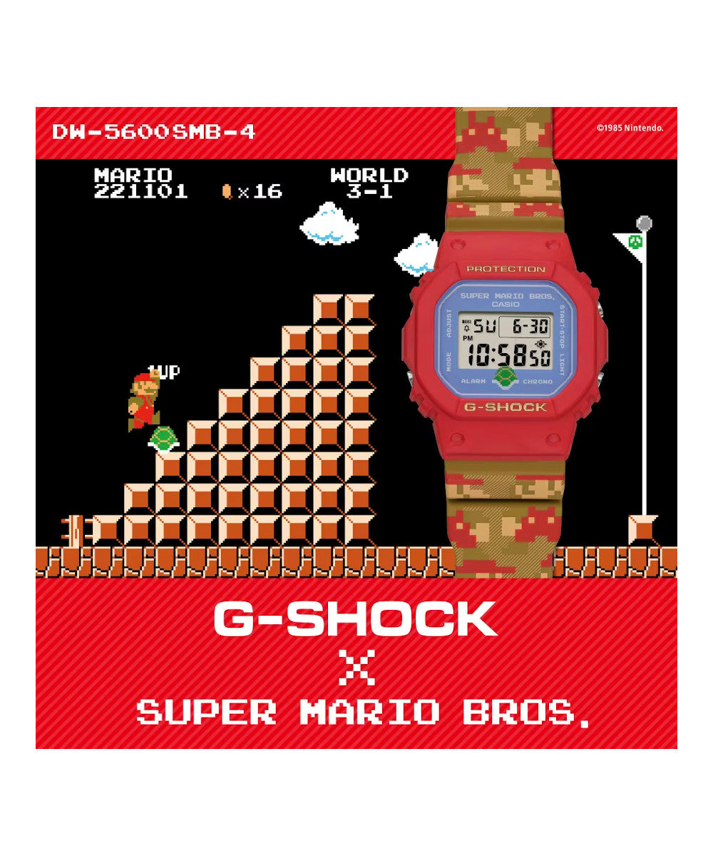 Dos íconos culturales que salen de Japón se encuentran en este G-SHOCK con temática de SUPER MARIO BROS. El juego de acción que aún hoy sigue cautivando a los seguidores de todo el mundo cobra vida con colores familiares y un diseño extravagante. SUPER MARIO BROS Cuando Nintendo Co., Ltd. lanzó SUPER MARIO BROS para Family Computer™ de Nintendo© en 1985, el juego desencadenó una serie que cautivaría a innumerables seguidores, tanto niños como adultos, durante 35 años y más. La serie de juegos SUPER MARIO ha vendido más de 400 millones de copias en todo el mundo, y Mario y el resto de su colorido elenco de personajes se han ganado el corazón de los seguidores no solamente en Japón, sino en todo el mundo. ©1985 Nintendo. “Family Computer” es una marca comercial de Nintendo Co, Ltd.