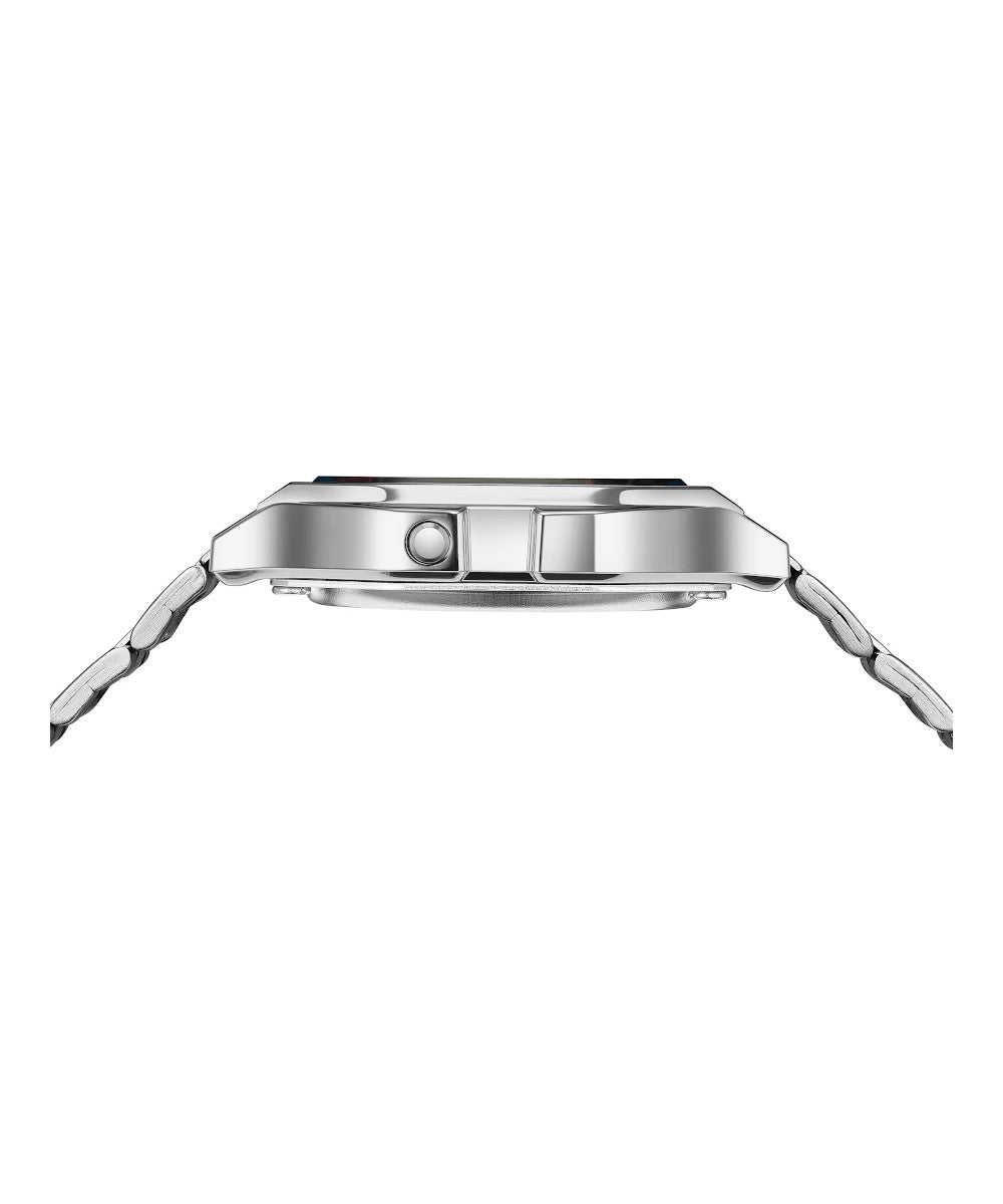 FUNCIONES: Cronómetro de 1/100 segundos, alarma diaria, señal horaria, calendario automático, formato de 12/24 horas, hora normal: hora, minuto, segundo, pm, fecha, día.BATERÍA: 3 años