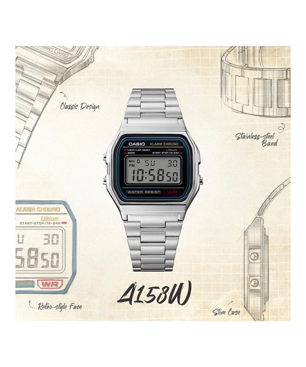 RELOJ CASIO VINTAGE A158WA-1DF-PLATEADO