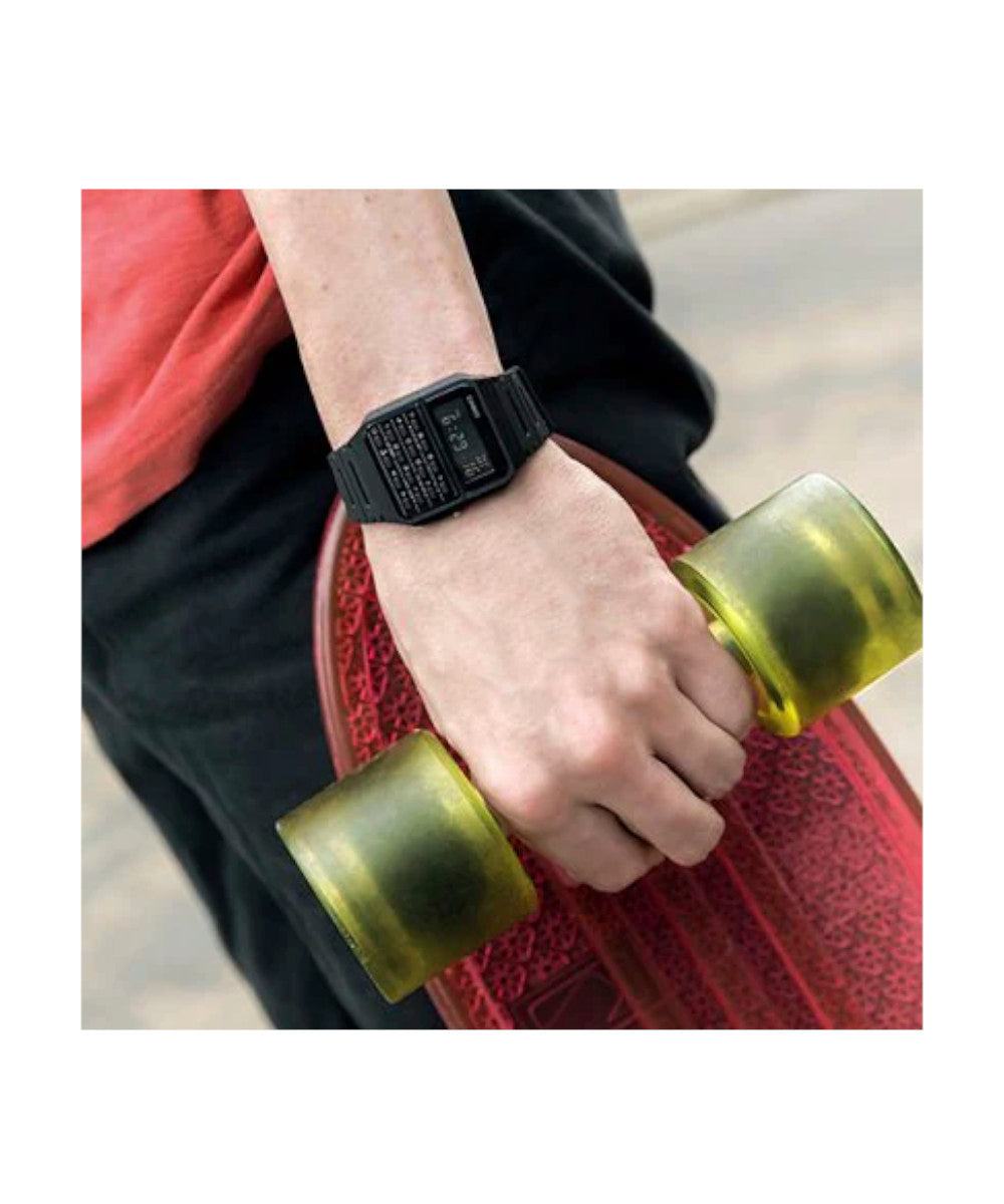 El Casio Vintage CA-53WF-1BDF es un ícono retro que mezcla estilo y practicidad. Su diseño clásico en resina negra incorpora una calculadora de 8 dígitos, cronómetro de alta precisión, hora dual, alarma diaria y resistencia al agua. Ligero y cómodo, es ideal para estudiantes, profesionales y amantes de lo vintage que buscan un reloj funcional con un look atemporal.